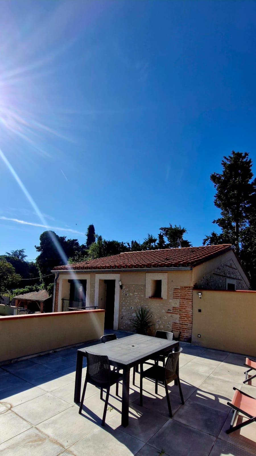 Our sympathetically converted barn is home to this lovely one-bedroom gîte. The original fabric of the building: big beams, old stonework, is very much on show, plus there's so much to see out of the window! You have a balcony view of Mt Canigou, as well as a lovely dining area for relaxed breakfasts and sundowner cocktails. Our little village is quiet and peaceful, yet only 15 minutes from the town of Prades, with its shops and famous market. And all around, we have the incredible Pyrenees