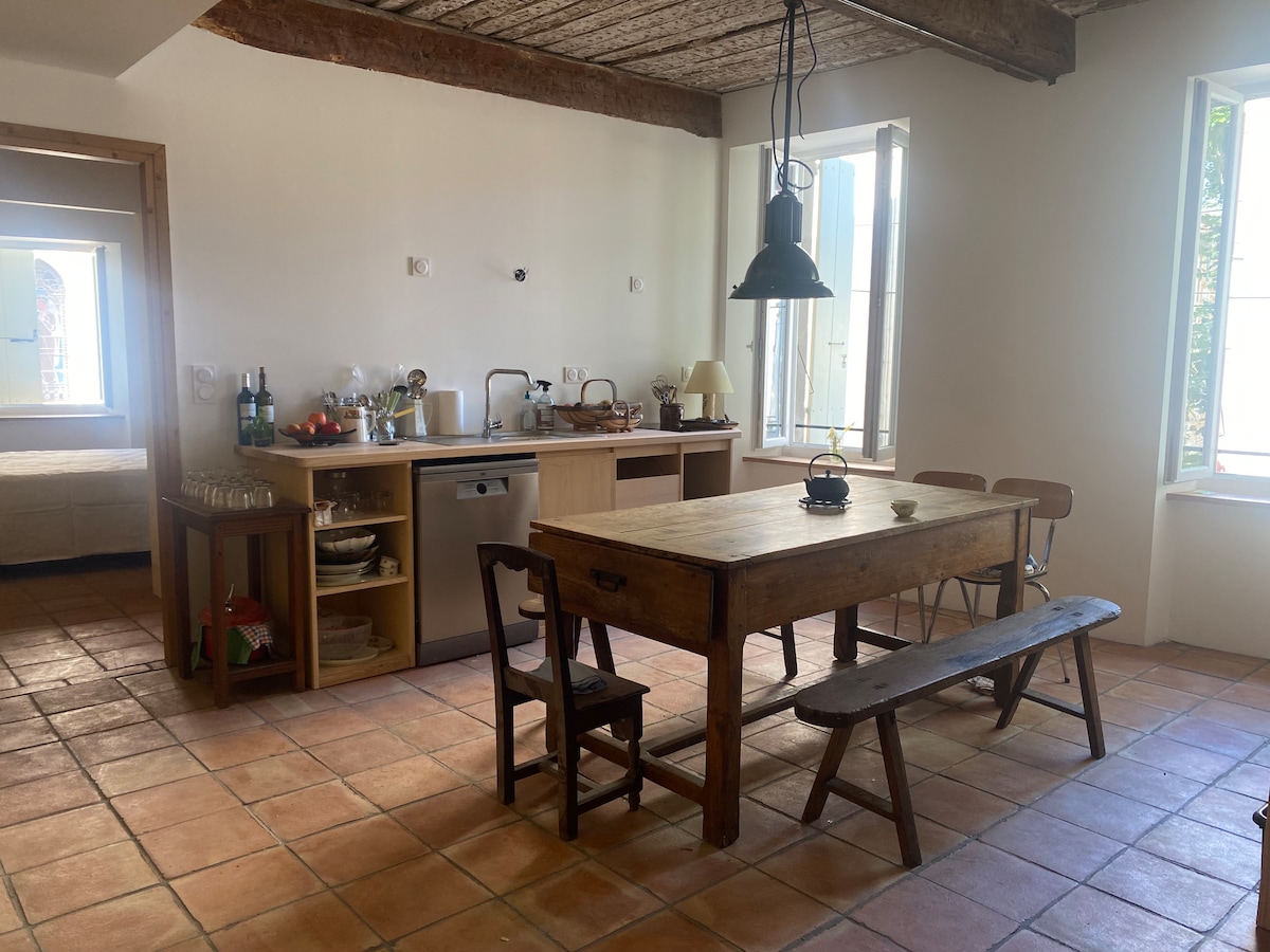 Appartement de charme situé au 2ème et dernier étage d’un bâtiment ancien en plein centre de Céret, en face du centre historique et à 50 m du musée d’art moderne. Rénové avec goût et originalité, il vous surprendra par ses volumes, ses plafonds mansardés et ses aménagements créatifs en métal et bois de rivière.