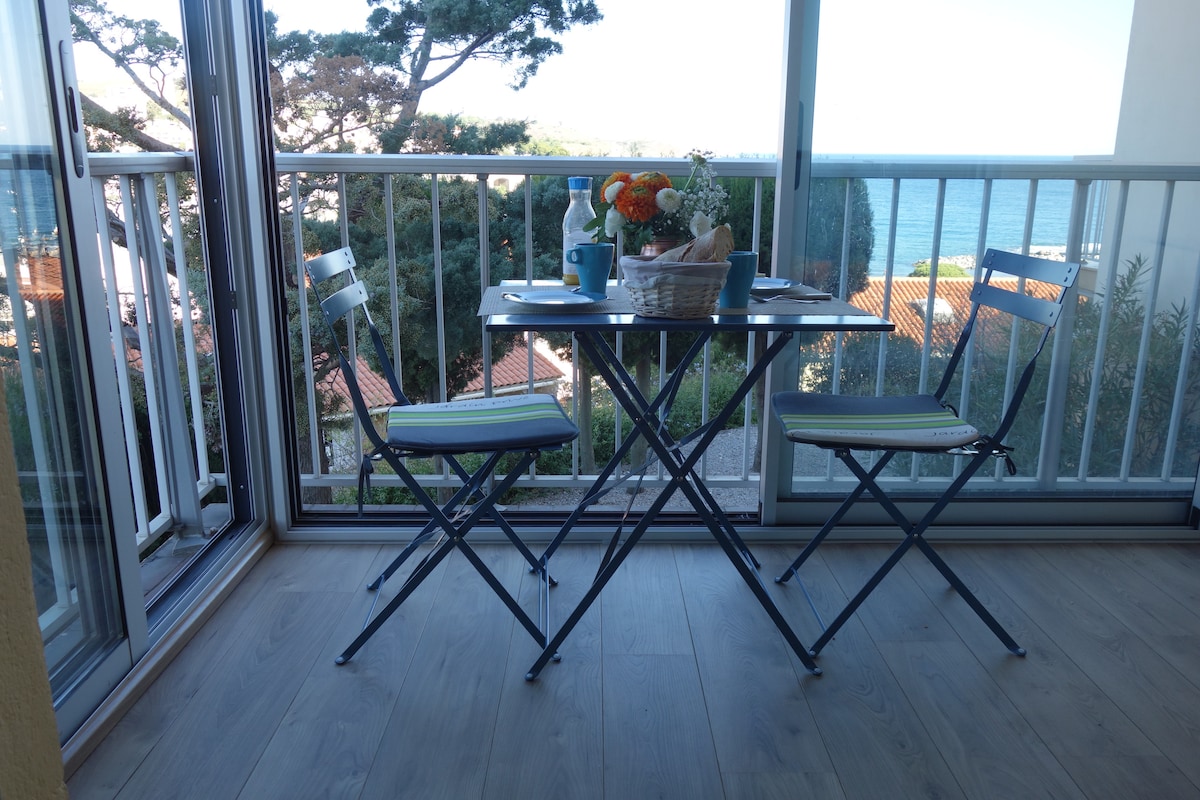 "Flofie a Banyuls" vous propose cet appartement Les pieds dans l'eau, spacieux et élégant. Ce dernier étage de 41 m2 climatisé avec loggia, offre une vue mer exceptionnelle à 2 pas de tous les commerces, de la plage et du port de Banyuls. Il peut accueillir 2/4 personnes avec une chambre (lit double), un canapé-lit , une cuisine ouverte sur le séjour, une salle d'eau, une machine à laver le linge et la vaisselle. Sophie et Floréal