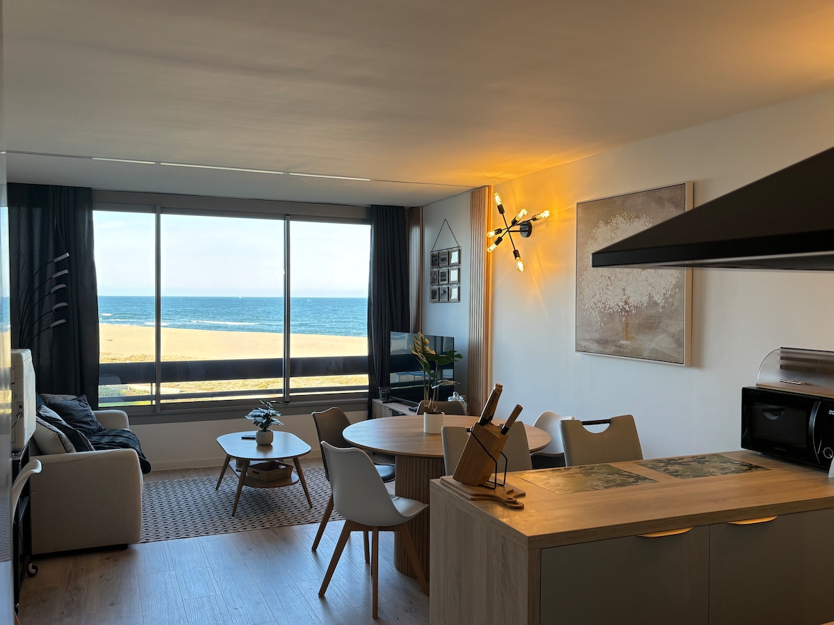 Détendez-vous dans ce logement calme et élégant. Appartement situé au 3eme étage accessible avec ascenseur ou escalier offrant une vue sur mer et canigou avec place de parking gratuite dans residence sécurisée. Linge de maison non fourni, possibilité de location moyennant un supplément de 15€/personne Logement possède 1 chambre avec lit 140x200, téléviseur Séjour avec canapés lit convertible 140*200 matelas 18cm. Cuisine entièrement équipée tout confort, machine a cafe Nespresso, cave a vin.