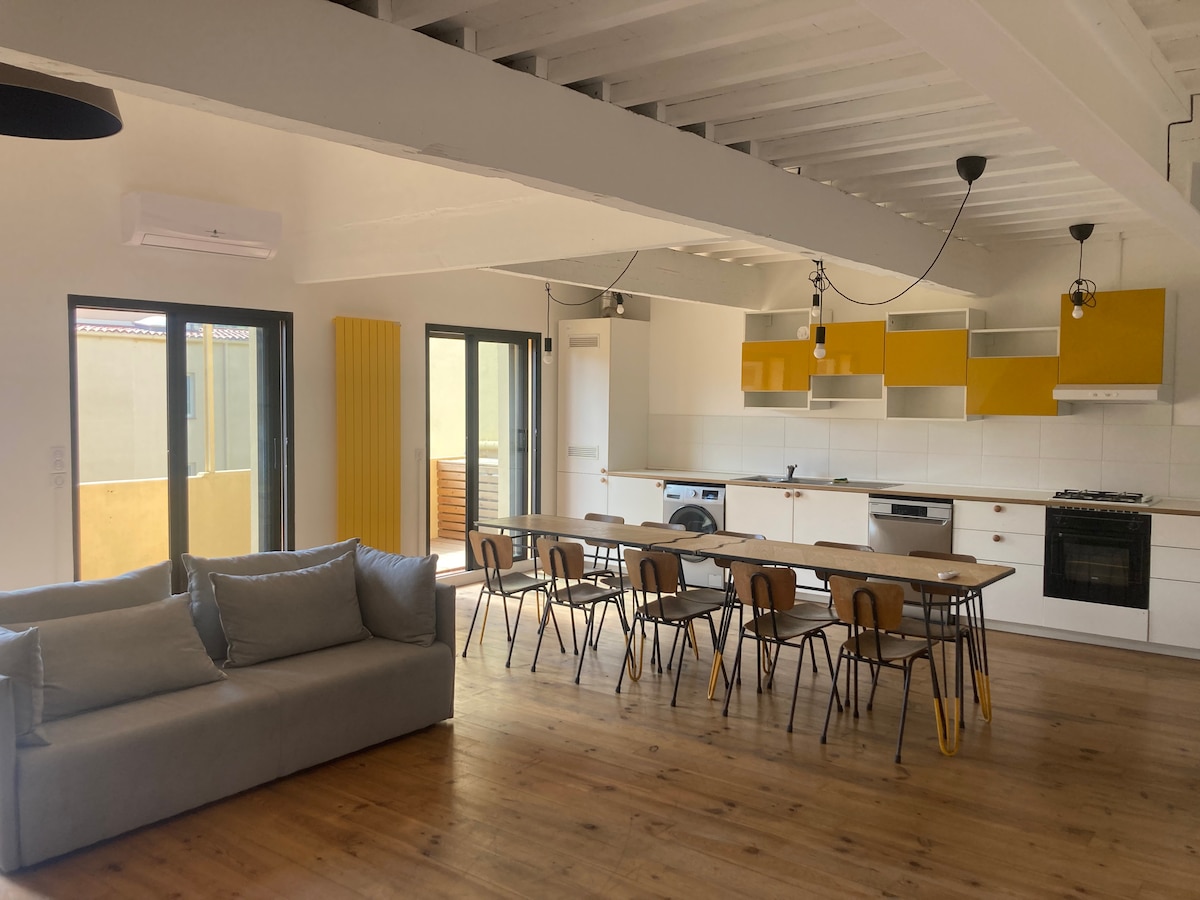 The loft is at 5mn of the Castillet and 2 steps from the place République. In a small quiet street you will enjoy both the calm and the proximity of the festivities of the hyper center, from the small streets to the many restaurants, shops, the market Place Republic on Saturday morning. The free parking is 3 mn walk and buses just down! The beaches are 15 mn and Spain 25 minutes. For your comfort, the air conditioning will regulate the temperature of the Loft, summer and winter! See you soon!