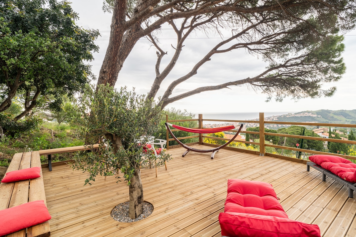 Heights of Banyuls-sur-mer, apartment with exceptional views of the Mediterranean and the Pyrenees. The accommodation consists of 2 bedrooms, a living room-kitchen of 33 m2 with 2 sofa beds, two wooden terraces with sea view, a second wooden terrace with landscaped garden. Perfect for long stays with plenty of amenities. Possibility of booking 2 additional bedrooms and bathroom on request. 1 parking space included in the rental. A few kilometers from Collioure