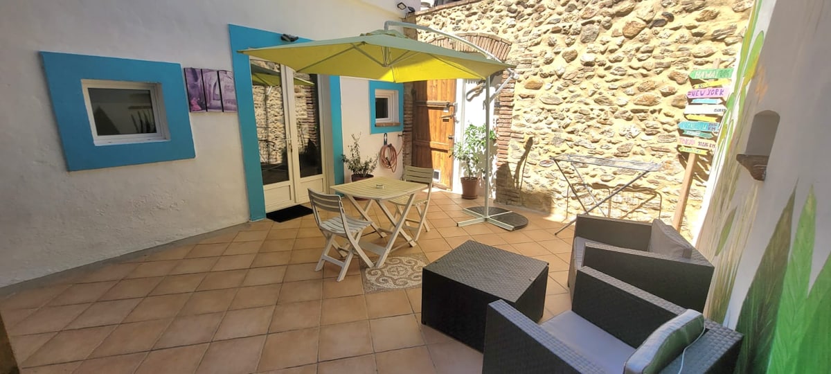 Bienvenue dans notre havre de paix , climatisée, à la déco moderne, havre de paix au fond d'une impasse. Profitez de la terrasse avec un bout de jardin pour vos repas, du terrain de pétanque à disposition L’intérieur offre un séjour, une cuisine équipée avec lave-linge, une chambre séparée et une salle de douche moderne. Parking privé. À 15 min de Perpignan, 20 min de la mer, 40 min des montagnes et de l’Espagne.