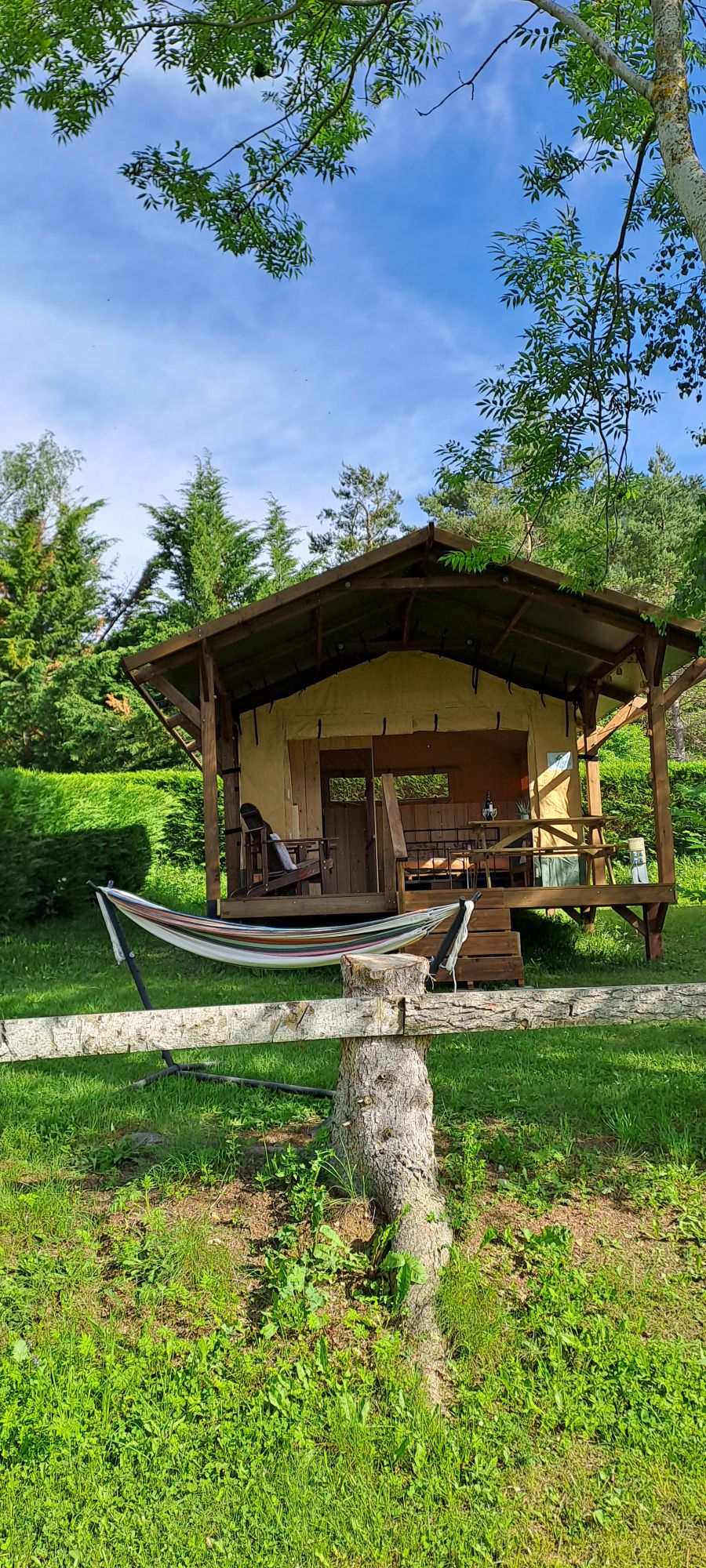 Camping à la ferme avec 5 bungalows toilés et 1 emplacement pour tente personnelle. Chaque bungalow a son jardin bien délimité , une terrasse, 2 chambres, et un espace cuisine sans eau courante mais avec rechaud et réfrigérateur, et donc électricité ( lampes, prises, ventilateur ). Vous trouverez les lits équipés de draps housses, couvertures, et oreillers avec taies Ambiance familiale dans le camping. Espaces partagés : toilettes, salle commune, piscine, barbecue, terrain jeux pétanque