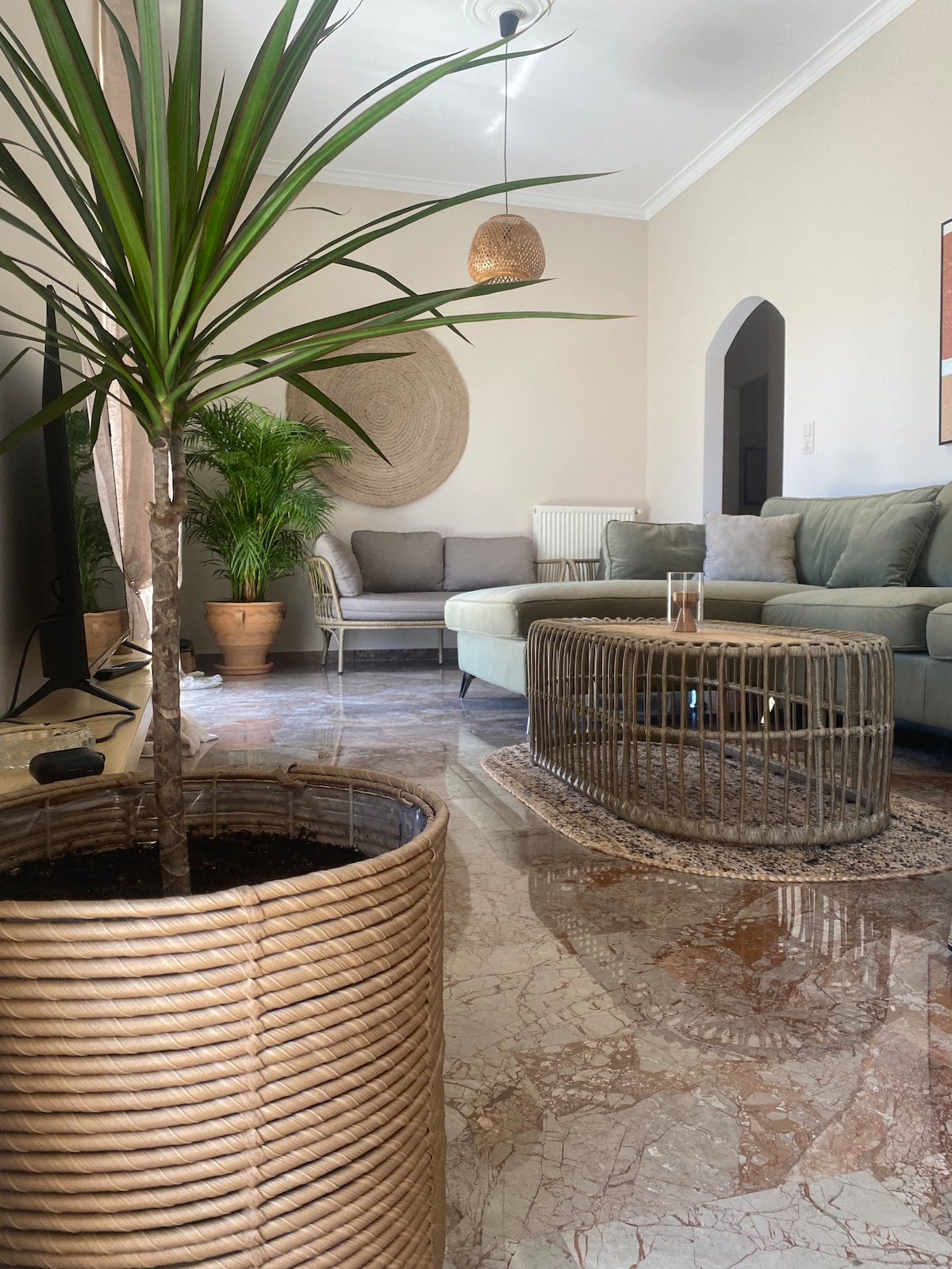 Ήσυχο διαμέρισμα λίγα μέτρα απο το κέντρο της Ολυμπίας και κοντά στον Αρχαιολογικό χώρο σε απόσταση βαδίσματος. Τρία κύρια υπνοδωμάτια με εσωτερικό μπάνιο το κάθε ένα , κοινόχρηστος χώρος με καναπέ κρεβάτι και μπάνιο ξεχωριστό. Μπαλκόνι , βεράντα και αυλή περιμετρικά του διαμερίσματος σε επαφή με τον κήπο. Άνετο παρκάρισμα στο δρόμο μπροστά απο το διαμέρισμα. Κουζίνα πλήρως εξοπλισμένη για παρασκευή γευμάτων.