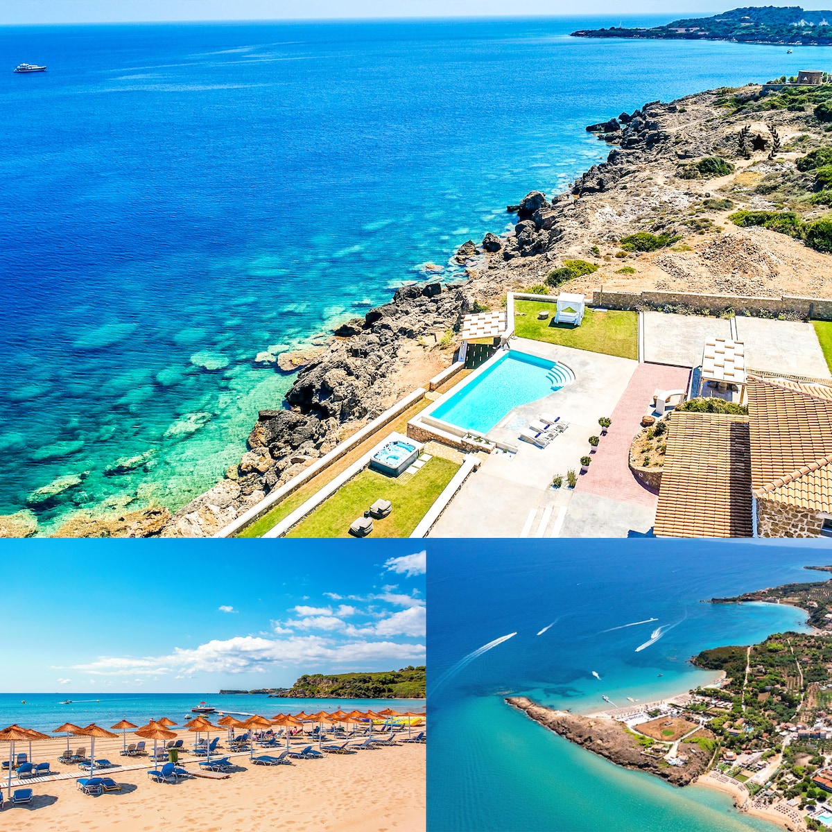 Wake up with breathtaking endless blue. An exquisite Zakynthian Gem, with a private 50sqm infinity Heated Pool & a Hot Tub overlooking the Ionian Sea, Alexandra Villa emerges from a storyline of timeless elegance, with rare access only for the privileged few. This is a luxurious heaven, featuring three luxury bedrooms with en-suite bathrooms, gym and outdoor playground, making it a dream holiday home that can comfortably welcome up to 8 guests to unwind.