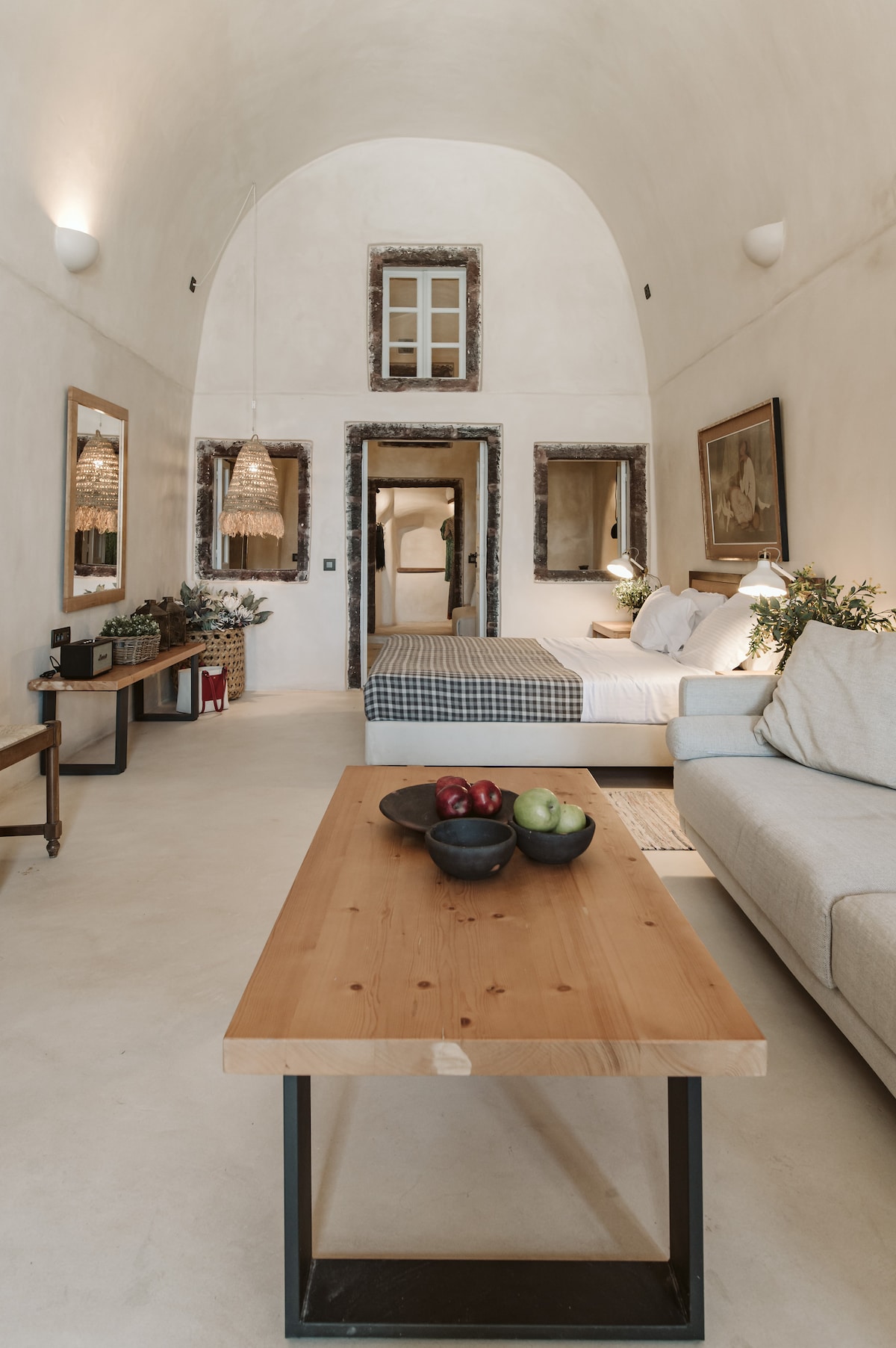 Loukia House is a traditional Cycladic cave house carved inside the Oia cliff. The beautiful arched ceilings stretch along the indoor and outdoor space. Its unique location offers panoramic views of the whole island and the caldera. A relaxing terrace gives a sense of privacy in the most sought-after spot in Santorini.