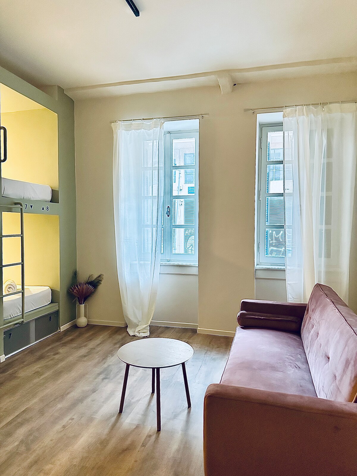 Nestled in the heart of Athens, our stylish 4-bed hostel room offers comfort and convenience just steps from historic landmarks, vibrant cafes, and local markets. Designed for modern travelers, the space blends contemporary charm with cozy functionality—perfect for resting after a day of exploration in the city’s rich culture and history.