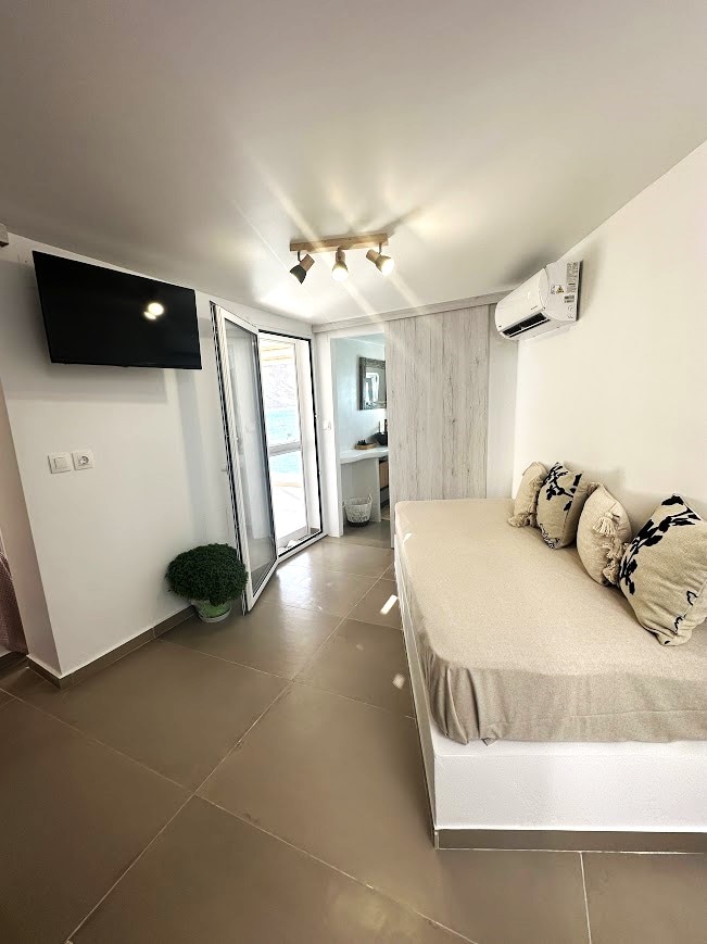 Welcome to Almi Guesthouse, a tiny jem, literally on the sea. The guesthouse consists of a single open space with a traditional dome ceiling and a bathroom, a total of 18sqm. Outside there is a paved little yard which leads to the edge of the rocks. The building was reconstructed in 2019 and it is located on the underside of the road that connects the Bridge with the gates of the Castle, near Kourkoula, a natural pool.