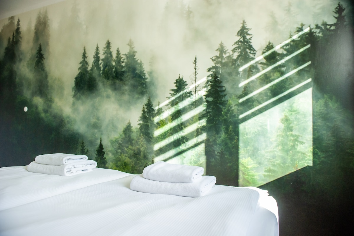 Zupełnie nowy komfortowy Apartament Park Poezji usytuowany w spokojnej, zielonej okolicy Gliwic. Z okna rozpościera się piękny widok na las. Do dyspozycji gości salon z tarasem, rozkładaną dwuosobową sofą oraz sypialnia z dwoma pojedynczymi łóżkami z możliwością połączenia. W pełni wyposażona kuchnia, zmywarka, lodówka, piekarnik, płyta grzewcza. Łazienka z wanną i wc wyposażona w pralkę, suszarkę do włosów. Goście mogą korzystać bezpłatnie z wifi, telewizji kablowej oraz miejsca parkingowego