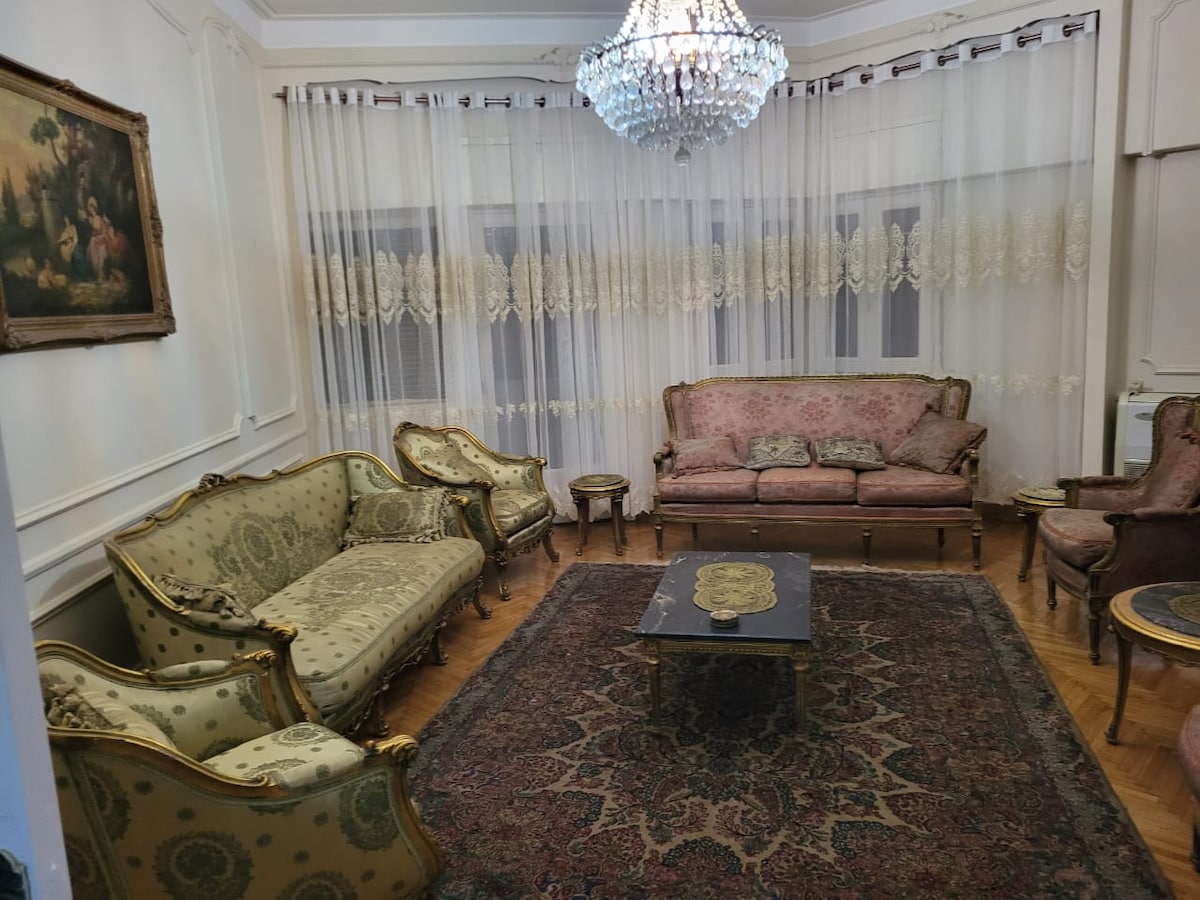2-Bedroom Apartment Very Close to the City Centre in Cairo Downtown. The apartment is: 20 minutes walking to city center 25 min. Walking to The Egyptian museum. 60 min walking to the biggest flee market in Egypt. 20 min by car to old Islamic Cairo. 20 min by car or public transport to the main train station. 10 min by taxi or public to the main bus station 40 minutes by car to the pyramids IMPORTANT NOTE: -the elevator is old and a bit scary but it is super safe to use and working well