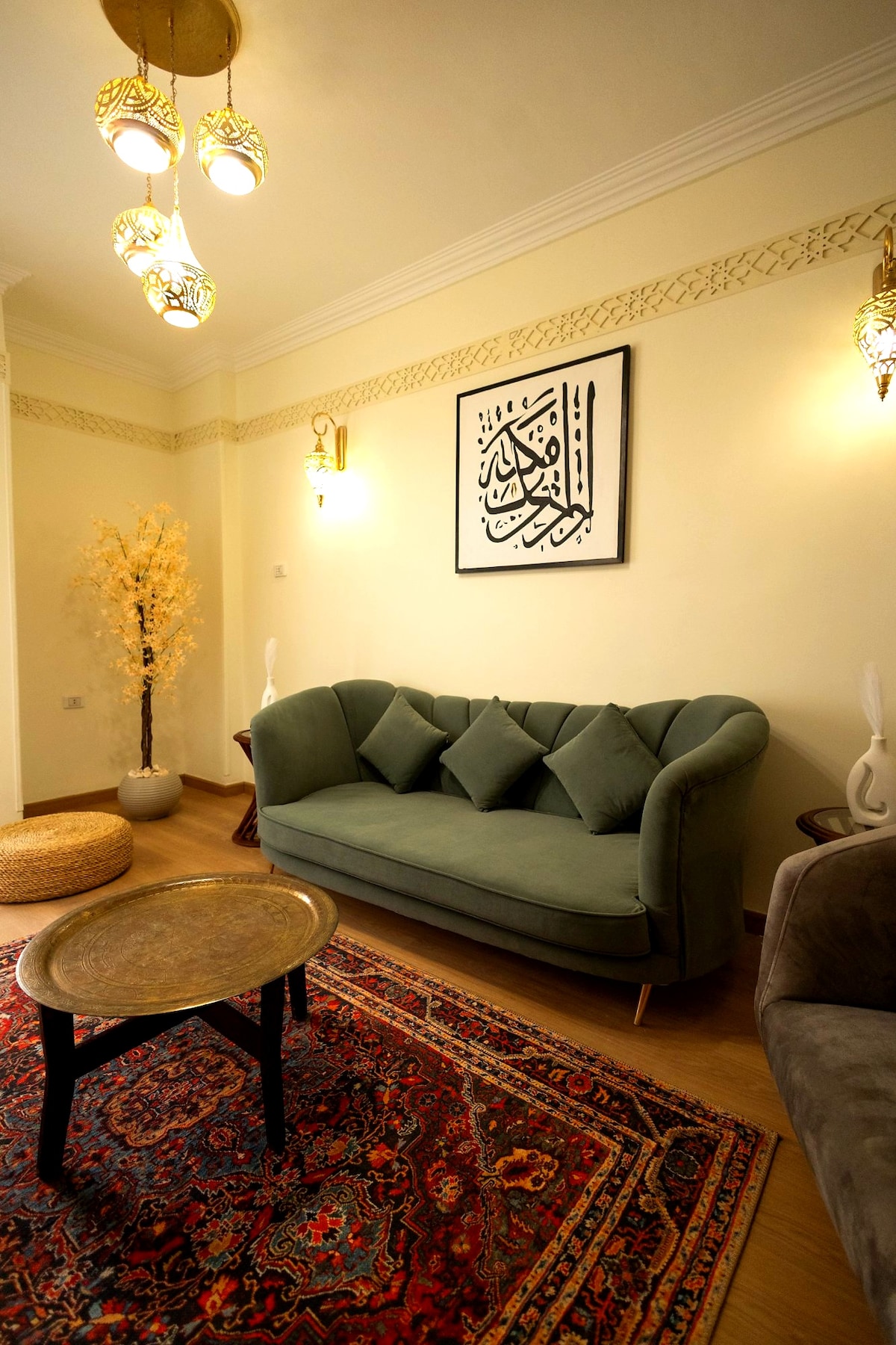 *Fully renovated in Sept 2024* Immerse yourself in the heart of Cairo at our newly renovated, 2-bedroom apartment, beautifully designed with Islamic-themed décor & custom-made furniture crafted by local artisans. Situated steps from Tahrir Square & the Egyptian Museum, this gem offers the perfect balance of contemporary comfort and authentic Egyptian art. With a cozy balcony & new amenities, it’s ideal for families, friends, or solo travelers seeking a unique stay in the vibrant Downtown area.