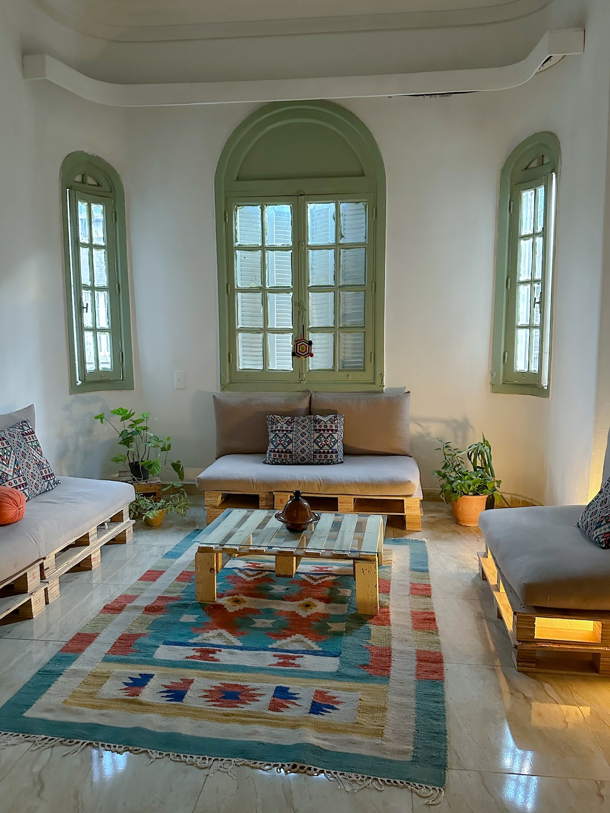 Looking for a bright, cozy, and charming short-term rental in the heart of downtown Cairo? Look no further! Our apartment is the perfect place for families and small groups of friends looking to experience the best of Cairo. Located just a short walk from the Egyptian Museum, Tahrir Square and the metro station, our apartment is ideal for exploring the city's rich history. Enjoy mid-century decor elements with a fully equipped kitchen, comfortable beds, high chair, and crib offered upon request.