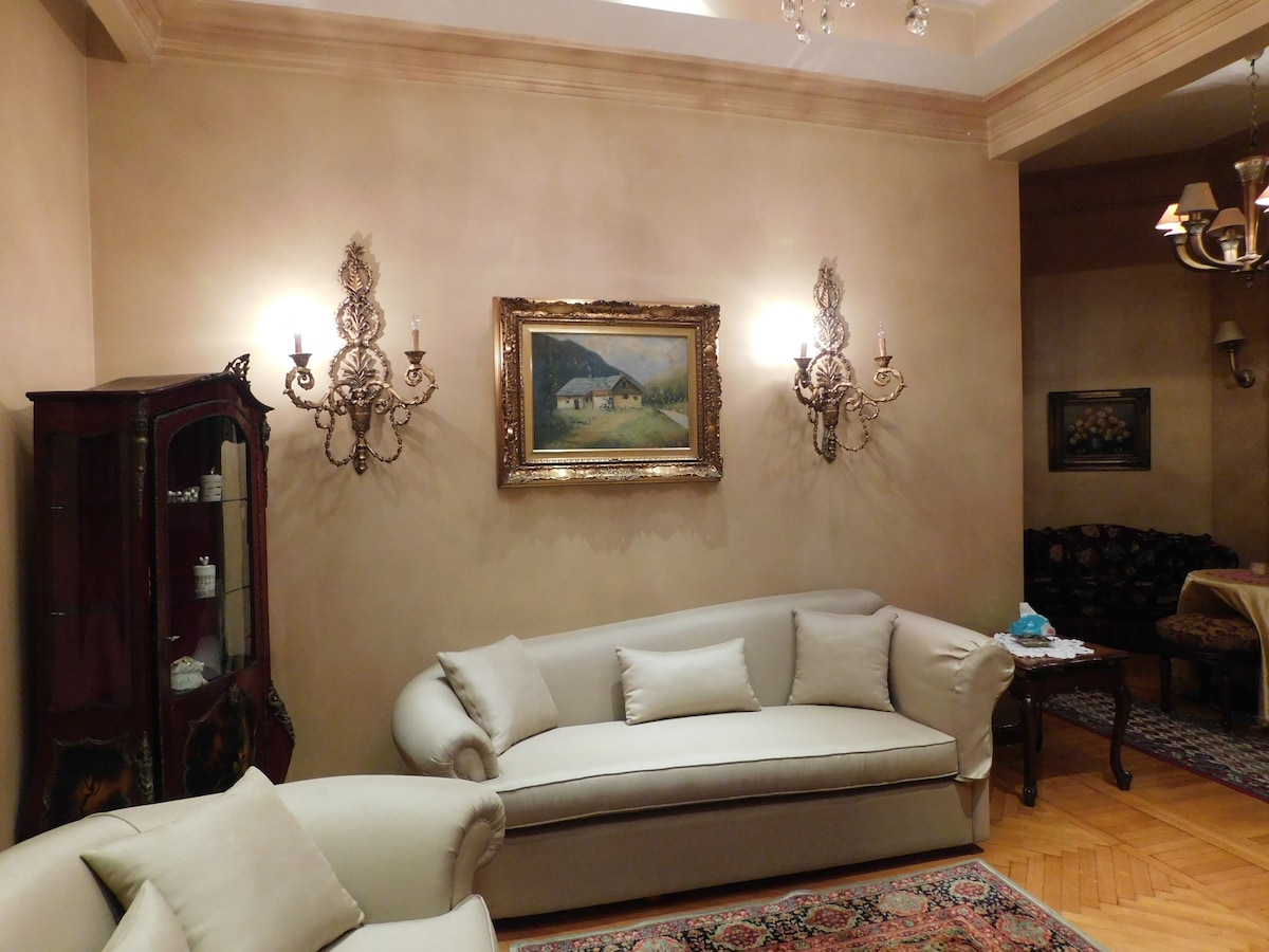Tucked away on a pedestrian street in historic downtown, this elegant 1920s apartment lies 500 meters from the Egyptian Museum and 1,000 meters from the Islamic Museum. The lovingly restored art deco apartment is on one of central Cairo's quieter and cleaner pedestrian streets. The doorman building has a clean entrance and elevator.