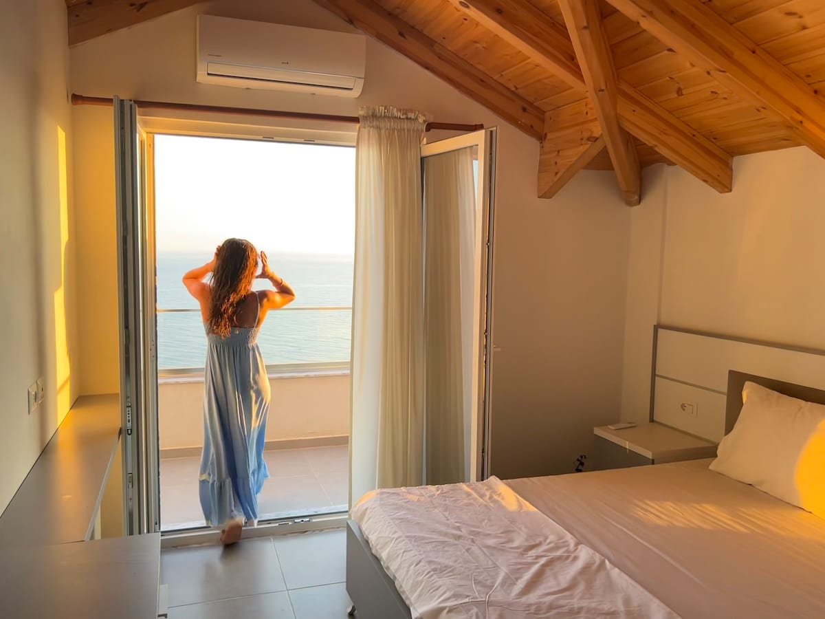 The apartment is located on the 2nd floor in our house and has a private entrance, wifi and a 180 degrees view of the Ionian Sea. Since you can reach both the centre of Himare and beaches by foot this is the perfect stay if you want to park your car safely and stroll around.