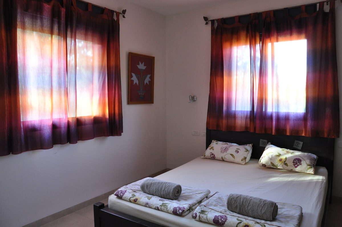 A quiet, stylish, fully renovated apartment in the perfect northern location—just minutes from Ayun, Dan, Tel Dan Reserve, Banias, waterfalls, hiking trails, Mount Hermon, and all that northern Israel has to offer. Two bedrooms with new beds and wardrobes, spacious living room with a large TV, hammock, bean bags, and dining area. Fully equipped kitchenette with coffee machine, office corner, games, books, AC in every room, shower, washer, and dryer. Your perfect getaway awaits.