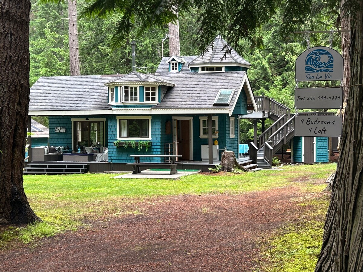 This snug, hand-built cottage features large windows and a deck looking toward Hague Lake and the rocky scapes of Turtle Island. It’s tucked away in a small grove of towering Cedar and Fir trees, but in the heart of uptown Mansons Landing with stores and a bakery cafe just steps away. It is ten min. walk to swimming, paddle boarding and kayaking at kid-friendly Sandy Beach, or a 15 min. walk down to an ocean beach and Mansons Lagoon. Friday Market and Cortes Museum are a short stroll away.