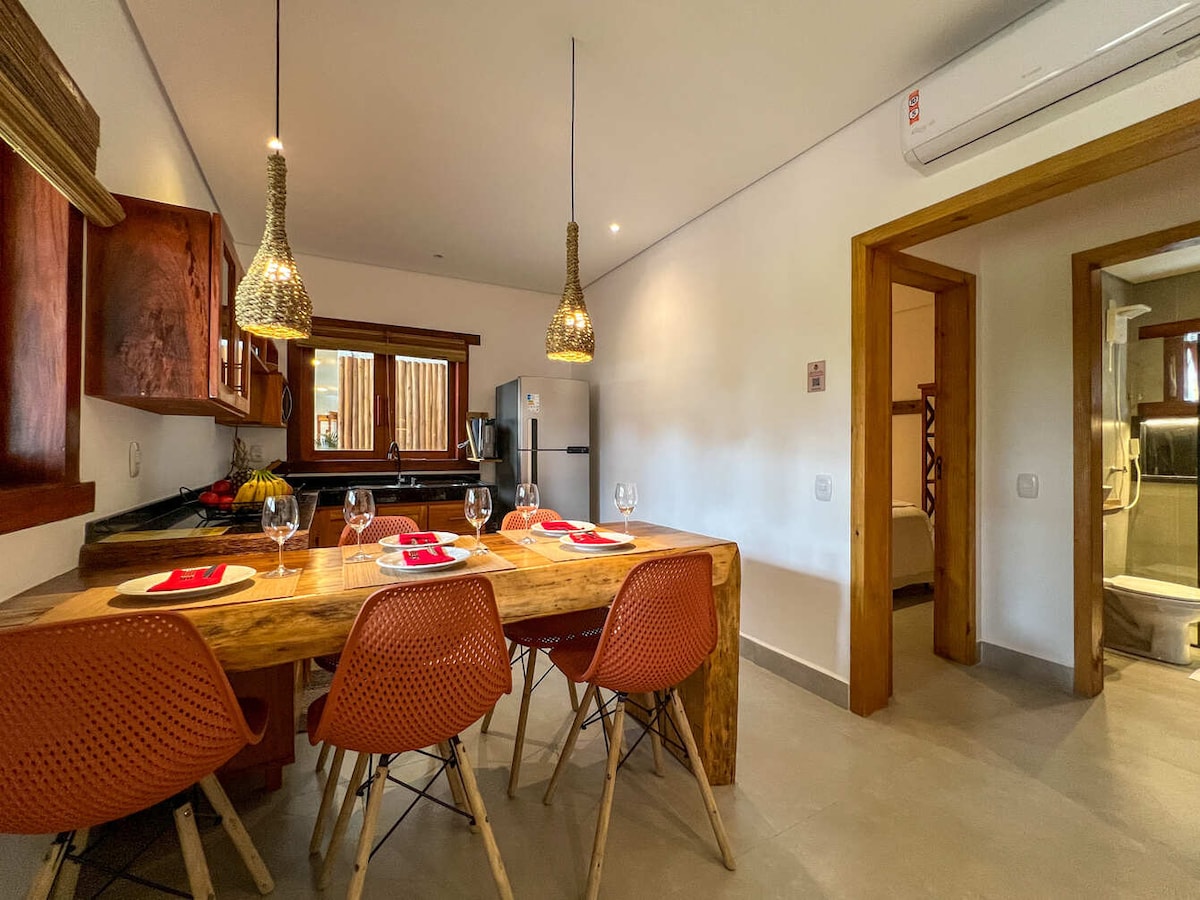 Tradicional house that was renovated in 2022 to receive guests looking for a privileged location and comfort next to the Quadrado. The suite has a Queen bed, 50" TV, mosquito net, air-conditioning and Egyptian cotton sheets. The kitchen is newly equipped, with a wine cella. The outdoor area has a hammock, heated hot tub with chromotherapy and a coffee area.