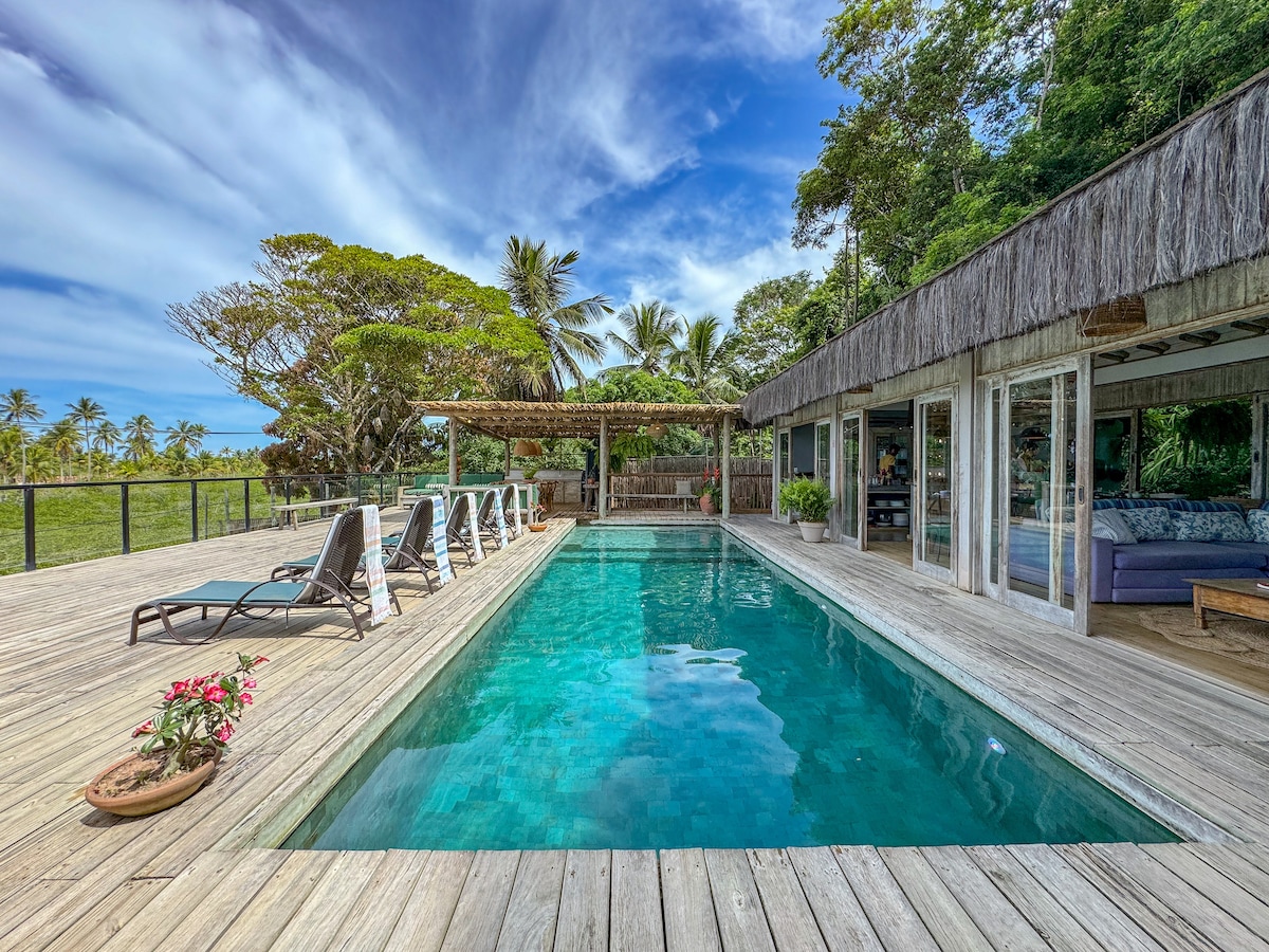 A nossa casinha foi pensada com muito carinho para trazer o máximo de conforto aos nossos hóspedes, desde uma jacuzzi incrível super privativa no deck da sua suite, enxoval inteiro de 400 fios a uma internet excelente de 200 Mb em fibra ótica para quem está de homeoffice. Nossa Vila tem 2.200 m² com lindas árvores que proporcionam um espetáculo a parte. Temos visitas diárias de 3 espécies de macacos, diversos pássaros e até bichos preguiça. :) Estamos a 2km do Quadrado e 3 km da praia + próxima