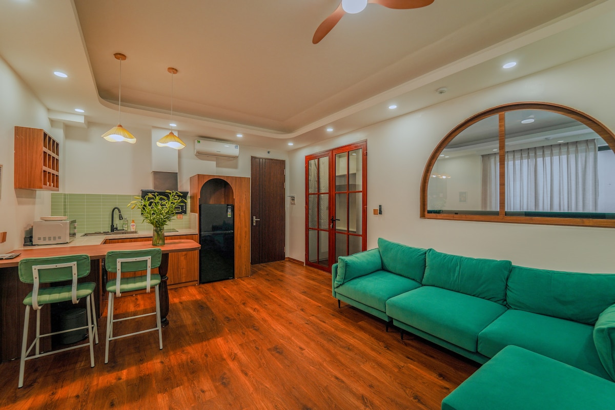Discover Hanoi from this boutique condo in the Old Quarter—just a short walk to TRAIN STREET, HOAN KIEM LAKE, TEMPLE OF LITERATURE, and the THANG LONG IMPERIAL CITADEL. Thoughtfully designed for your comfort, it features a KING SIZE BED, PRIVATE KITCHEN, and a FULL HD PROJECTOR WITH 100 INCH SCREEN. Whether you're soaking in the WOODEN BATHTUB or taking in the city views, every detail invites relaxation. A perfect blend of central location and serene retreat.