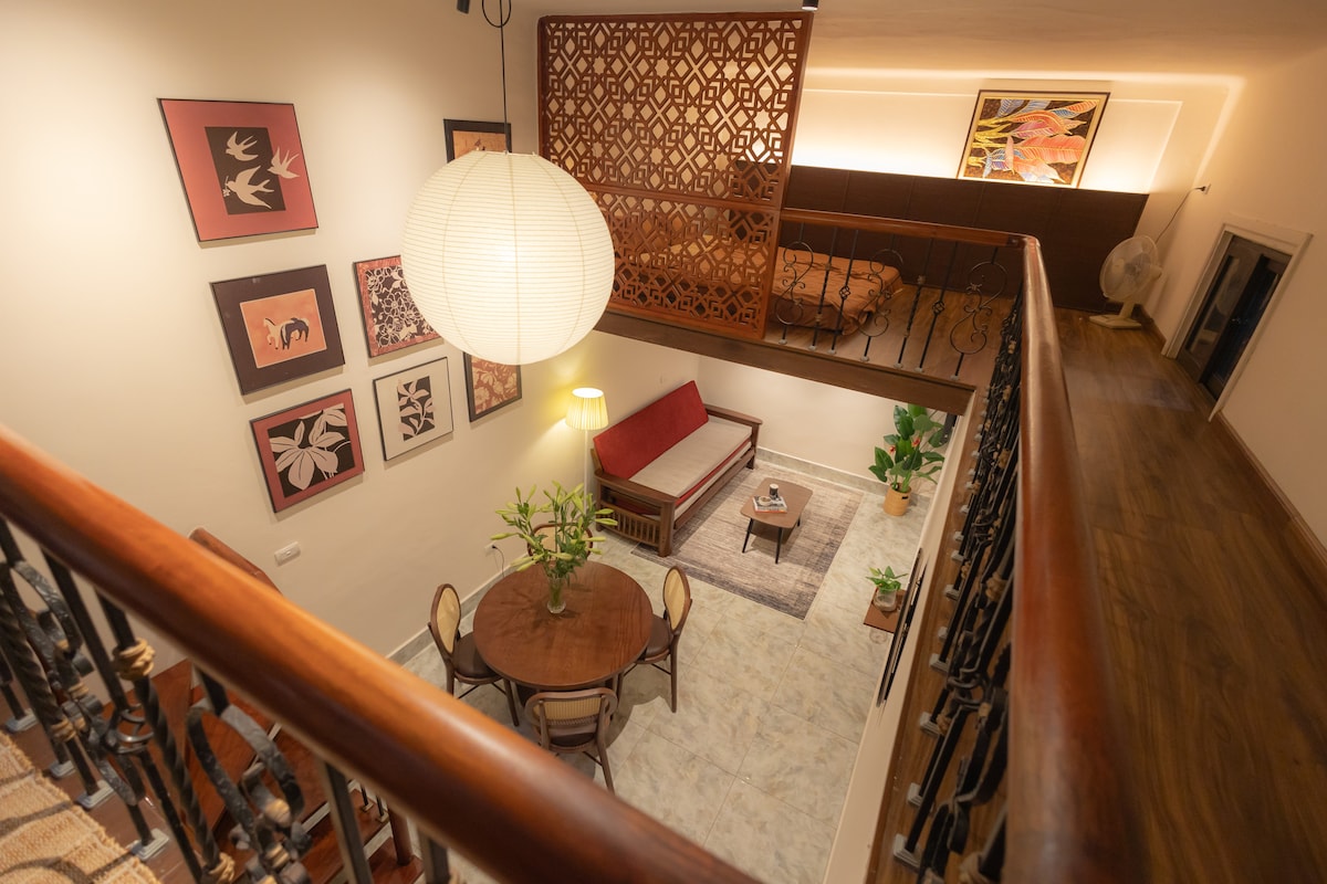 An unique feature of Hanoi in the narrow alleys that open up to reveal many homes inside. If you want to have the experience of living like a real Hanoian in houses with small areas but modernly equipped, this house is the perfect choice for you. This is a small 5-storey house designed in a minimalist style which close to the main street near the center of the Old Town. 5mins to the Ha Noi railway station 4mins to Hoa Lo Prison 5mins to a local Train Street 15mins to Hoan Kiem Lake