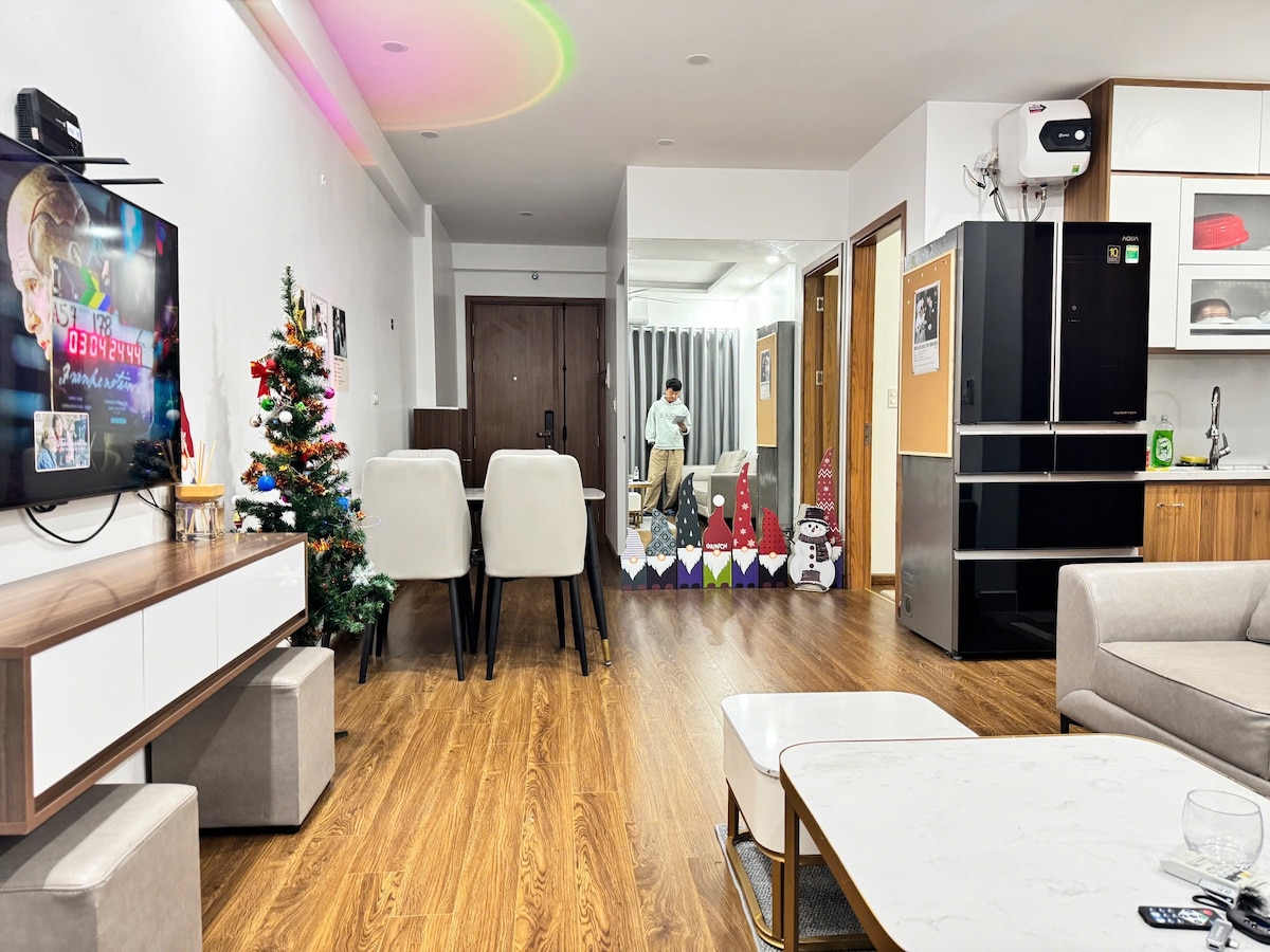 - Bạn sẽ dễ dàng tiếp cận mọi địa điểm từ chỗ ở nằm tại vị trí trung tâm này. - Đầy đủ tiện ích vui chơi ăn uống: Sân Golf 3D, sông hồ dạo bộ, phòng gym, bể bơi xung quanh, nhiều quán cafe nhà hàng ngay dưới chân toà nhà. - Căn hộ có đầy đủ đồ dùng để có thể tự nấu ăn, có khu giặt đồ riêng tiện nghi như ở nhà bạn. - Có tới 2 phòng ngủ với 2 giường rộng đệm mềm cho bạn không gian sinh hoạt rộng rãi. - Luôn có khay nước và bánh ngọt miễn phí cho bạn khi nhận phòng