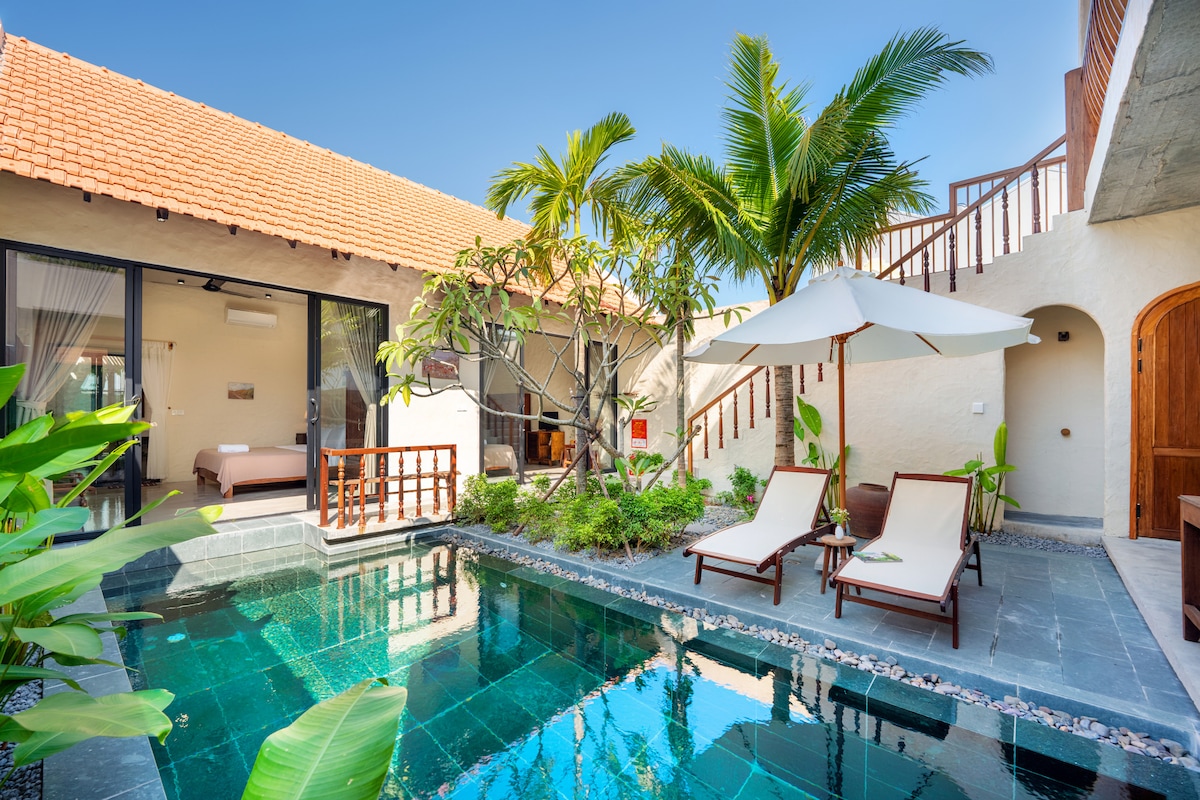 A Curator’s Note: You are viewing the "Coastal Sanctuary," one of only THREE exclusive properties in our bespoke "Cua Dai Heritage Collection". We intentionally keep our portfolio small to guarantee uncompromising quality. While our sister villas cater to larger gatherings, this specific 3-bedroom retreat is designed for intimate groups of 6 adults and 2 children who prioritize wellness, ocean breezes, and deep, quiet reconnection