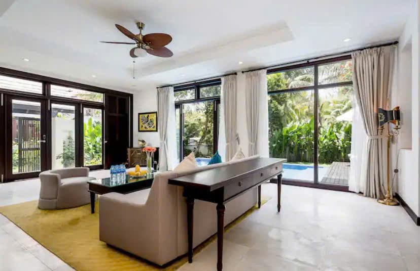 🎁 A newly built villa just 3 minutes’ walk to both Cua Dai Beach and Thu Bon River, offering a rare blend of privacy, wellness, and coastal charm. Enjoy a private pool, beach yoga, and walkable access to local restaurants and spas. With 3 serene bedrooms (2 king beds + 2 singles), it comfortably hosts 6 adults + 2 kids (under 6) — perfect for families seeking space, relaxation, and meaningful connection in a refined, tranquil setting.