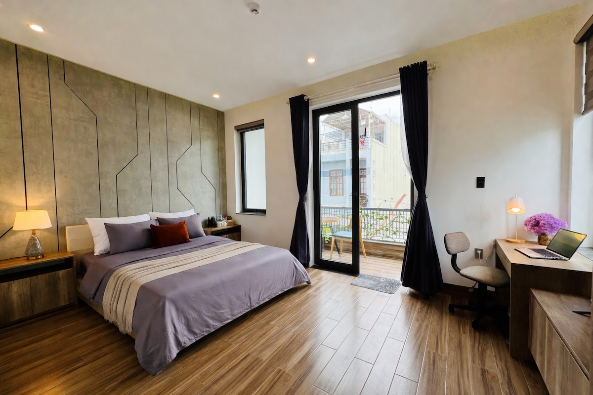 🌿 Boutique Room with Balcony | Near Beach & Dragon Bridge Stay in the city center, just minutes from My Khe Beach and Dragon Bridge, in a cozy boutique-style room designed for comfort, light, and everyday convenience. This room is spacious, warm, and thoughtfully arranged, perfect for guests looking for a calm and comfortable stay without in-room spa features. Large windows and a private balcony bring in natural light, creating a relaxing atmosphere throughout the day.