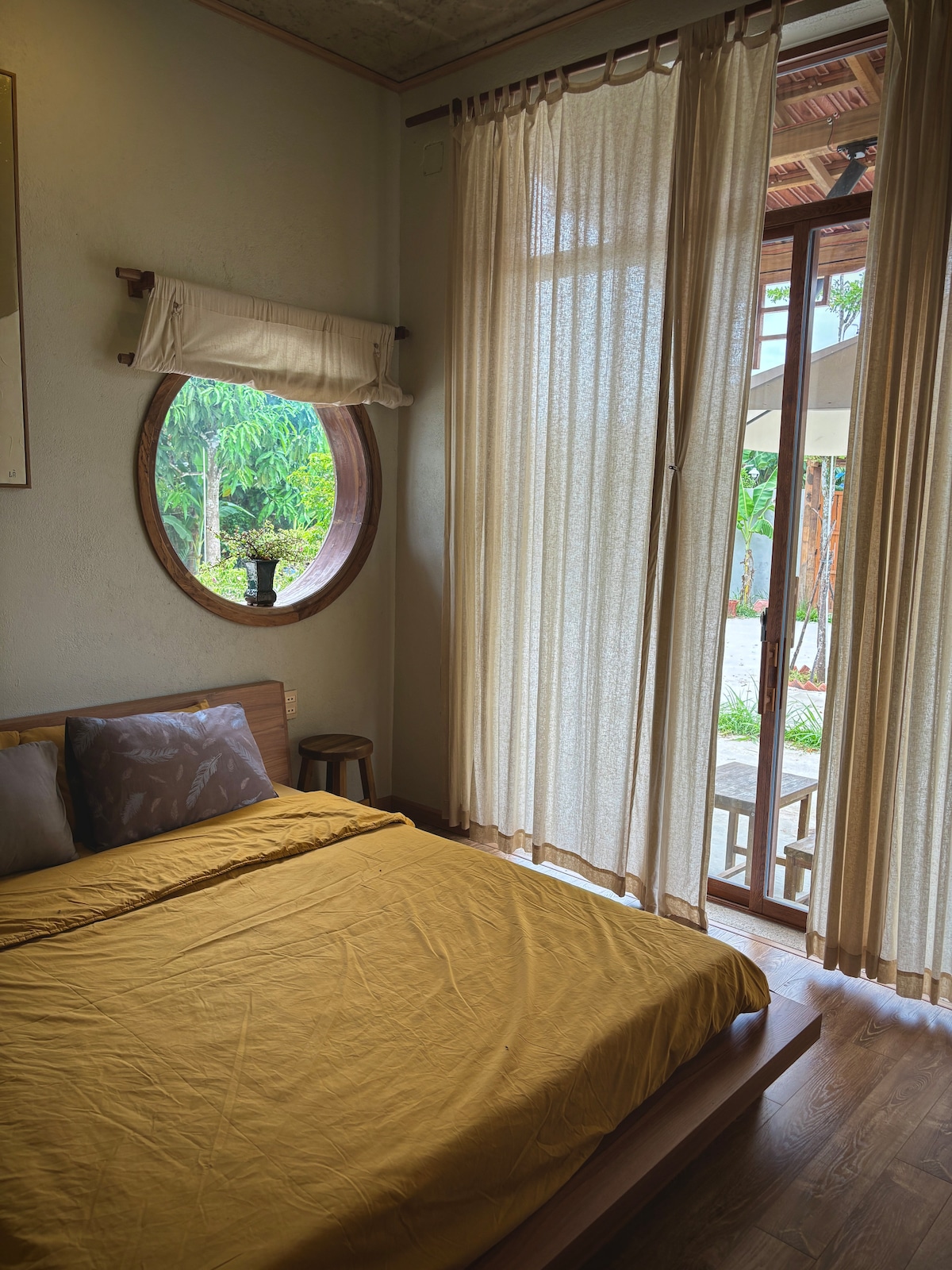 Inside you will find: - King-size bed as a direct view of the Phuoc Giang River - Central air conditioning ensuring comfort in all seasons. - Bathroom with bathtub and shower, fully equipped with shampoo, body wash and hairdryer, ensuring you have everything you need for a worry-free vacation.