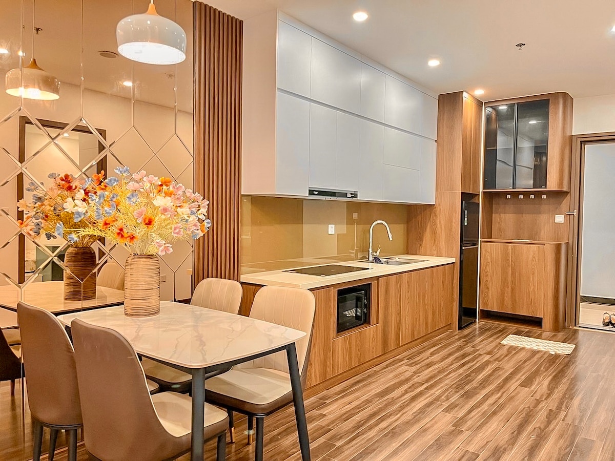 Luxury apartment à la carte Ha Long - the highest 41 floor building in Ha Long, the apartment on the 32nd floor has 2 bedrooms and a living room with glass ocean views, at the foot of the building is a white sand beach, 5-stars standard room facilities are fragrant and clean, suitable for families with young children or groups of friends who want to have a common space when traveling but still need a private, closed bedroom, especially when traveling. Watch the sea 24/24 even lying on your bed
