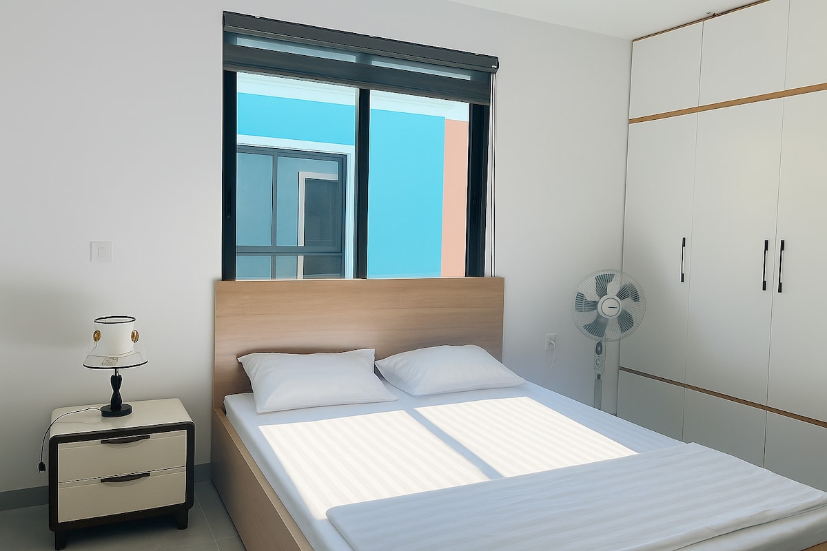 Căn phòng vị trí tầng 2, có cửa sổ thoáng mát. Giường rộng rãi cho 2 người, đệm lò xo êm ái, vệ sinh khép kín và đầy đủ tiện nghi cơ bản.