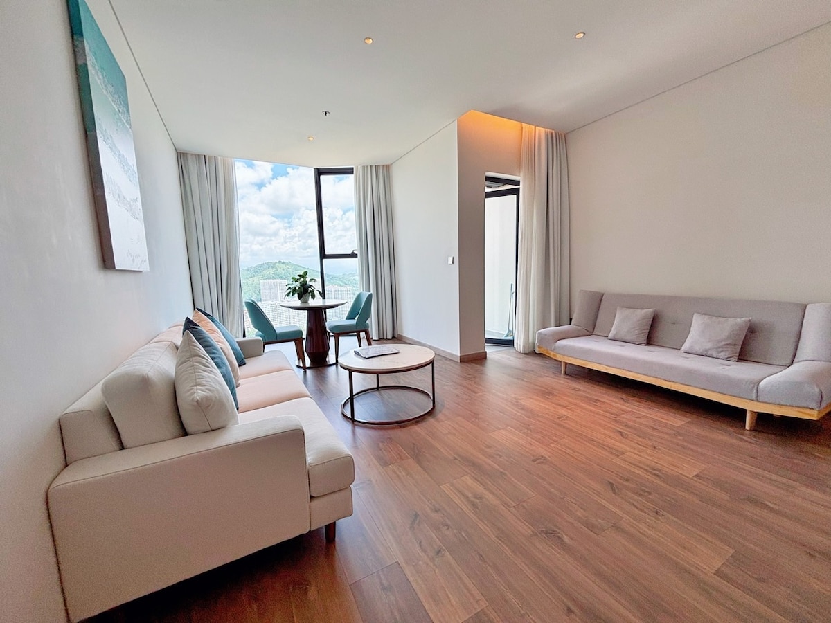 Luxury apartment à la carte Ha Long - the highest 41 floor building in Ha Long, the apartment on the 32nd floor has 2 bedrooms and a living room with glass ocean views, at the foot of the building is a white sand beach, 5-stars standard room facilities are fragrant and clean, suitable for families with young children or groups of friends who want to have a common space when traveling but still need a private, closed bedroom, especially when traveling. Watch the sea 24/24 even lying on your bed