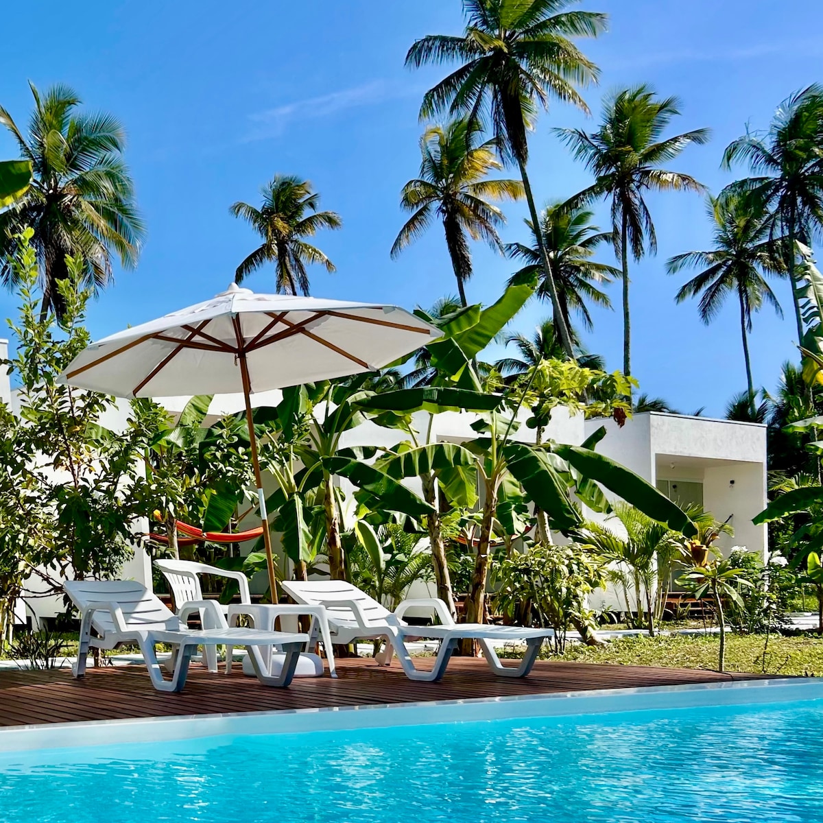 Take it easy at this unique and tranquil getaway. Stylish 2 bedroom beach house with beautiful wooden details. Perfect for a romantic couple getaway but also enough space for a family or for 4 friends. The beach house is located on a coconut farm with private beach access. Just a few steps to the ocean of the relaxed 4th beach (4a praia) at Morro de São Paulo.
