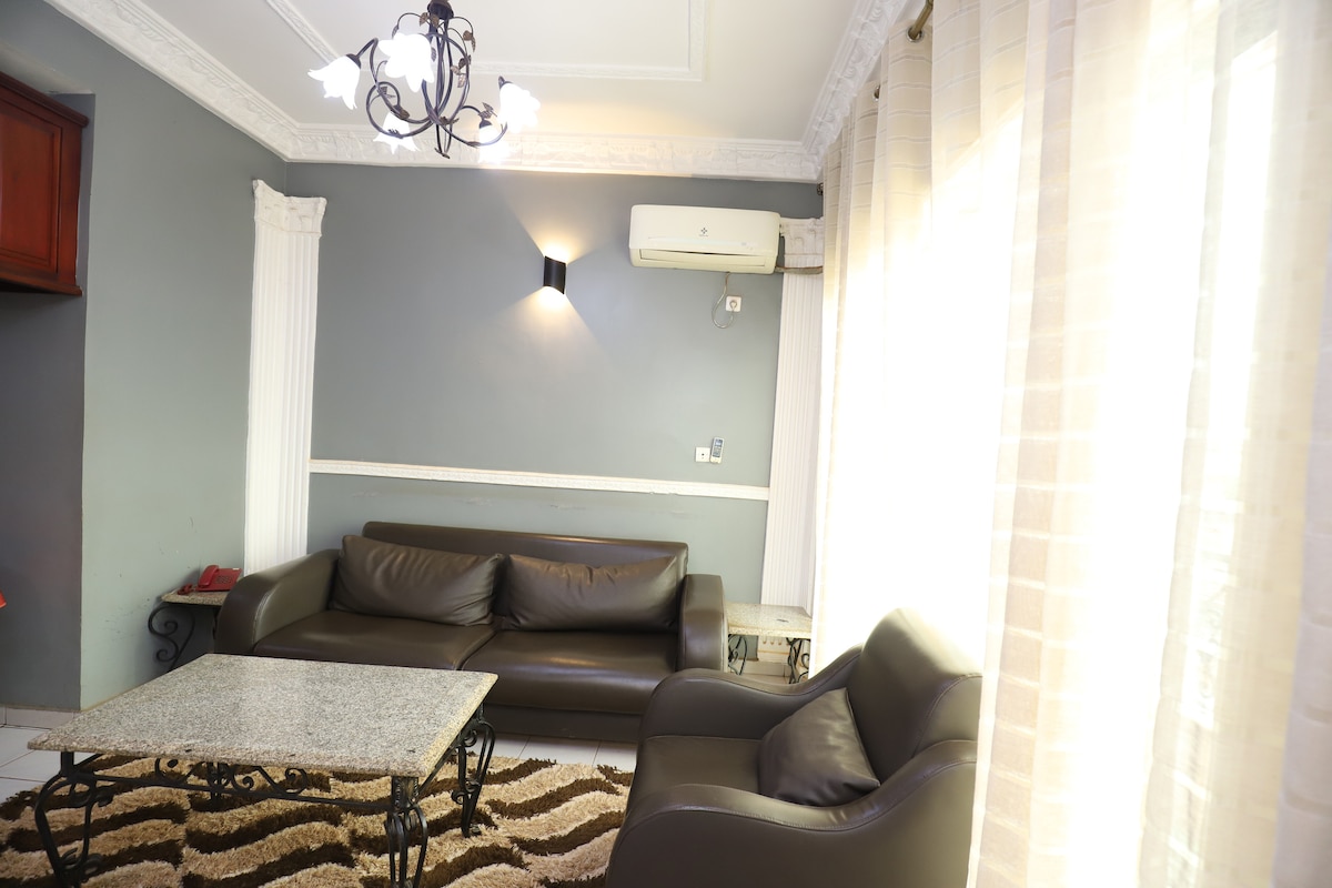 Location :GPS (3°53'01.4"N 11°31'01.1"E) or (3.883709, 11.516958) Vacation Home Near Bastos and Downtown Yaoundé. These are 3 studios available for rent to visitors. You will have 1) large Living room with a large Visio TV 2) Modern Kitchen with a gas cook-top 3) One guest bath room 4) One master Bedroom with private shower an Bathroom. 5) Fiber optics internet connection with Wifi 6) Video Phone access from your Room and Optional BBQ on Request.