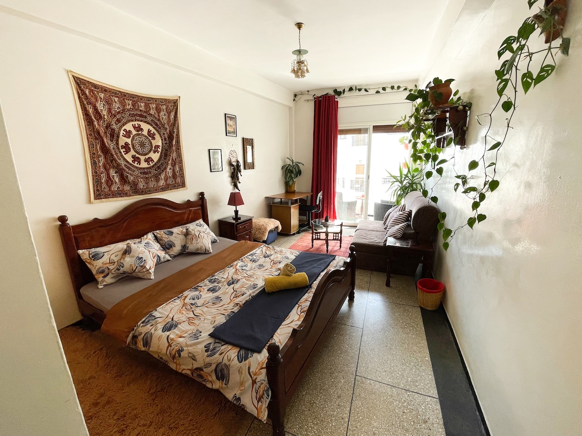 Welcome to our nest in the heart of the historical Hassan neighborhood. This studio was thought and designed to make you feel at home. Located 5 mins walking distance away from the most visited places in Rabat ( the Hassan Tower, the mausoleum, the old medina, Oudaya and the marina), this stay will make your trip more enjoyable . Unlock the door to our little haven and enjoy your stay ☀️ The building is located in one of the mostl historical neighborhoods and is not equipped with an elevator