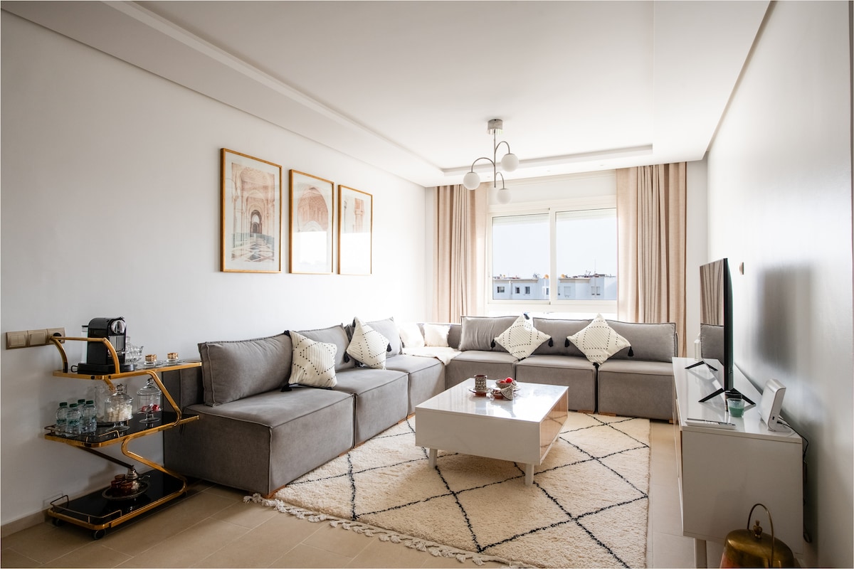 Modern Comfortable, luxurious & relaxing home in Rabat for travellers who value comfort , decorated with taste & attention to detail in a calm secure neighbourhood. It’s located a few steps from downtown, near shops, and restaurants. Only a 10-minute walk from 'Kasbah', 'Old Medina', and the beach of Rabat. This apartment is the best choice for families or friends traveling in Rabat. We have set everything for you to feel home during your stay in Rabat. FREE PARKING+HIGH-SPEED WIFI+NETFLIX