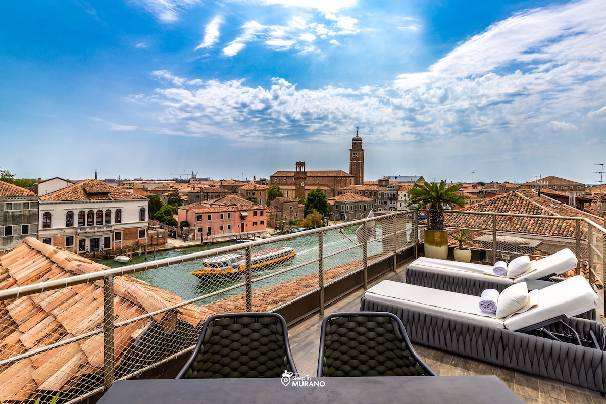 The MURANO Suites - ACQUAMARE is a beautiful 70mq "mini-loft" penthouse located on the third and top floor of a building on the bank of the Murano island's Grand Canal, Venice. The highlight is its 15mq roof terrace called "altana" in Venetian. With breathtaking views and deckchairs overlooking the lagoon...here, at 15 minutes by Vaporetto from the tourist center of Venice, you live in the midst of local life, like a Venetian.