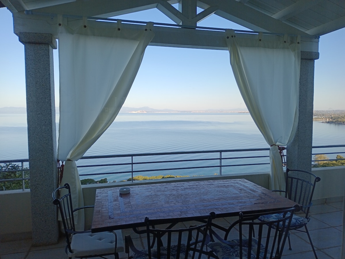 " Situata sulla una collina che domina il golfo di Cagliari a circa 1 km dalla spiaggia di sabbia di Sant'Andrea, a 20 minuti dalla città di Cagliari e dalle meravigliose spiagge della costa sud-ovest della Sardegna, Villa Alfonso è pronta ad accogliervi nella sua bellezza ed eleganza, dove potrete godervi in tutto relax e privacy nelle sue terrazze panoramiche o nella piscina nel grande giardino un buon aperitivo o uno spuntino ,cotto al barbecue o nella cucina attrezzata .