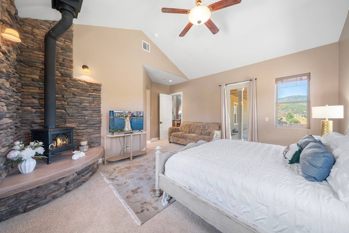 Spacious 3-Bedroom Retreat with Pool. This beautifully appointed rental features 3 bedrooms, 2 remodeled bathrooms, and a backyard oasis with a private pool, spa, and hot tub. The outdoor kitchen includes a gas grill, and a Blackstone griddle. Relax in the covered living space with ceiling fans, a sound system, and a 70” TV. Inside, enjoy plush theater seating, a 75” TV with surround sound, and seamless backyard access. Just 10 minutes from Palmdale, this is the perfect getaway!