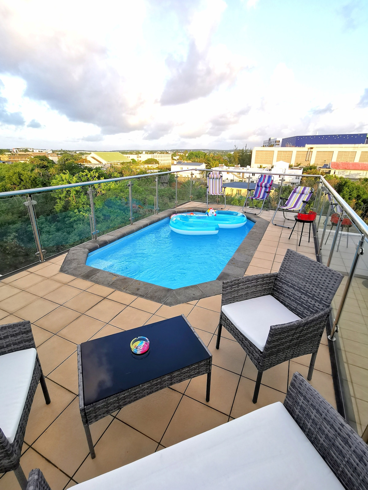 Your 1st floor apartment in a new, small guest house. You will enjoy privacy and 2 Bedrooms, 2 Bathrooms, lounge, 2 kitchens and private patio. The property has heated roof top swimming pool, gym and picnic table. Located close to private beaches and boutique hotels. Your have a large private BBQ terrace, outside seating, and access to bar and others areas. Local restaurants and hotels are a short walk. AC in all rooms. Point aux Canionniers is between Mont Choisy Beach and Grand Baie.