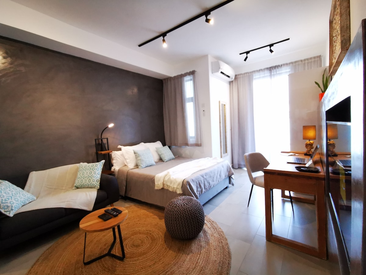 Experience comfort in this quintessential luxurious studio in the heart of Ebene with an amazing view of the sunset from your private balcony. The space boasts an open plan living with a fully equipped kitchen, laundry facilities and private bathroom. Stay cozy all year round with the available air conditioning while a fast WiFi connection, a commodious queen-sized bed, sofa and TV will help you wind off in the evening. Any reservations comes with free allotted covered parking space.