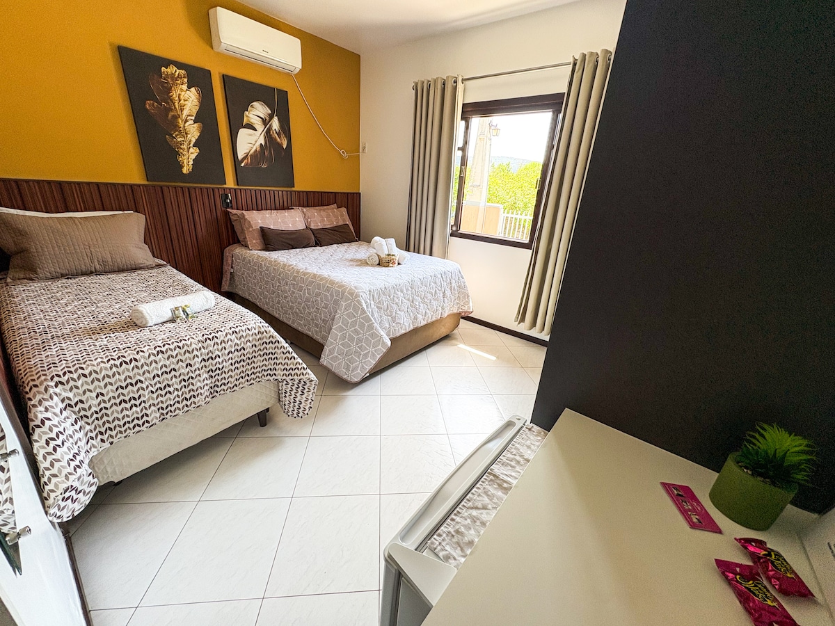 ¡Acogedora suite doble en la mejor ubicación de Bombinhas! Estamos en el centro, cerca del restaurante Mestre das Águas, a 150 metros de la playa. Es un ambiente cálido, con naturaleza y tranquilidad. Ideal para parejas y grupos. Tiene una moderna y práctica cocina comunitaria, piscina, parking. La habitación tiene baño propio, aire acondicionado y WI-FI. Cerca de la playa de Bombinhas, Lagoinha, 4 islas y Sepultura, a la que se puede llegar caminando.
