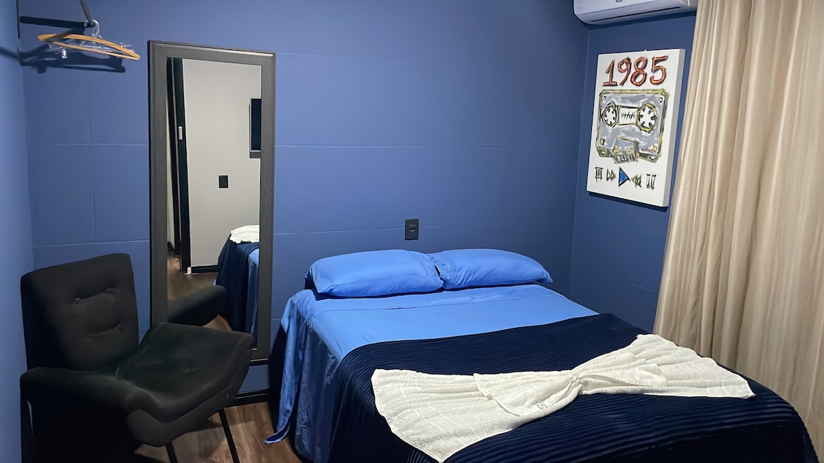 Simplicidade e economia, local confortável, tranquilo e seguro. Boa localização distante 1,3km da rodoviária e 800m da praia caminhando. Cama com lençol travesseiros e toalha, ar condicionado no quarto, cozinha equipada, garagem coberta e churrasqueira .