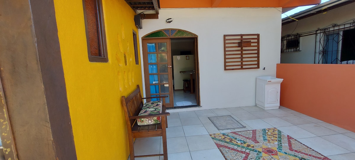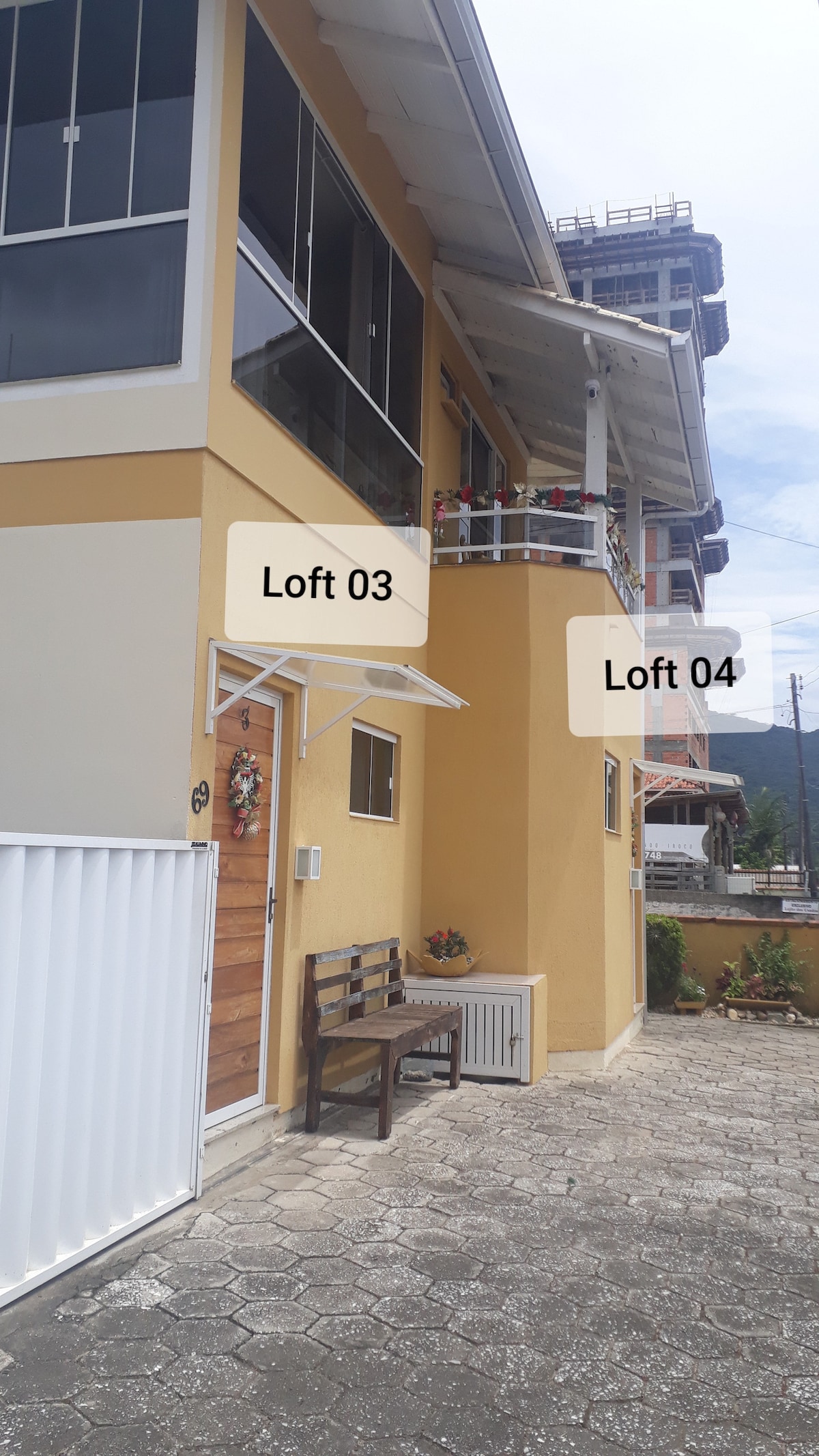 Loft B é novo com piscina Possui Wi-Fi Térreo: sala com sofá cama, TV smart e ventilador; banheiro completo; cozinha com fogão, geladeira duplex, micro-ondas, liquidificador, chaleira elétrica e utensílios básicos de cozinha; Área de lazer privativa. 1º piso: Quarto com uma cama de casal e uma cama de solteiro + auxiliar, com ar-condicionado. Temos mercado na rua Padaria próximo Ficamos no meio de duas lindas praias A rua bem tranquila