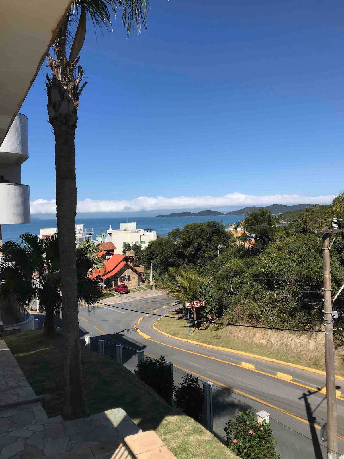 Apartamento com linda vista de Bombinhas, Bombas e Porto Belo. Apto de 1 quarto (casal - cama queen size), cozinha completa, banheiro, sala e sacada c/rede. Moderno, decoração clean, ar condicionado e TV led. A propriedade possui pátio, piscina, churrasqueiras e há 1 vaga de estacionamento (compartilhados). Ficamos 5min a pé das praias: Lagoinha, Sepultura e Retiro dos Padres, zona tranquila e segura, 15 min a pé do centro de Bombinhas. Acesso a cobertura por escadas.