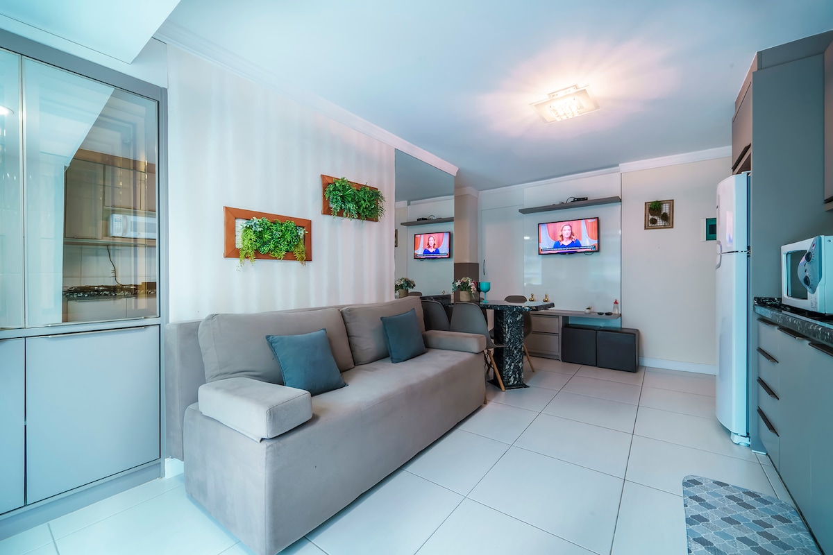 Apartamento Aconchegante com Sacada e Churrasqueira 🌊✨ Nosso apartamento é amplo, arejado e perfeito para quem busca conforto, ele possui: Um quarto com cama box de casal e ar-condicionado e um roupeiro; Sala de estar com TV Smart, Netflix e Wi-Fi, integrada à cozinha completa com todos os utensílios e eletrodomésticos que você precisa; Um banheiro; Uma sacada encantadora com vista panorâmica para a praia, com uma churrasqueira ideal para momentos de lazer.