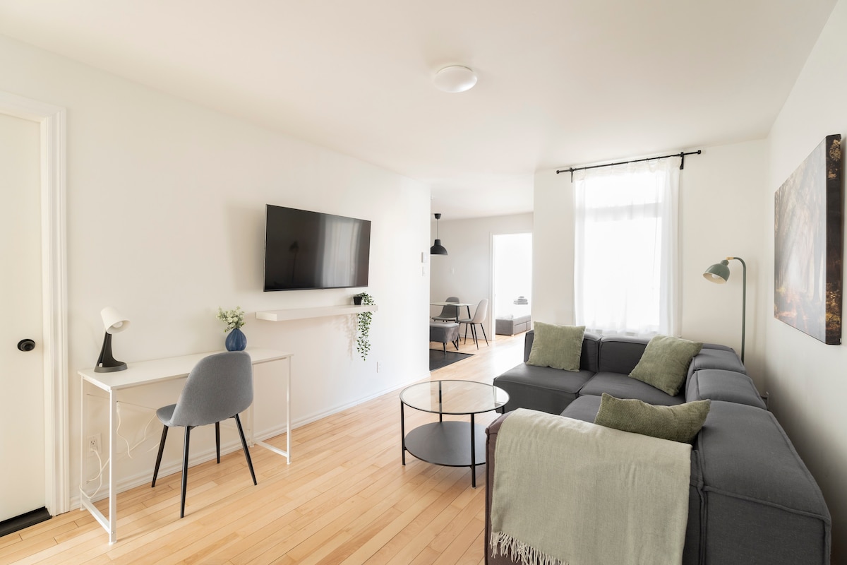 This modern condo (2022) is less than a 15-minute walk from Old Quebec. Enjoy the amenities of a hotel without neglecting the comfort of your home. It includes nearby parking, a swimming pool, a terrace, a gym, a fully equipped kitchen, and a washer and dryer. Its cozy bed will welcome you after your days of walking to visit the most popular tourist attractions or after your evenings at the many quality restaurants nearby.