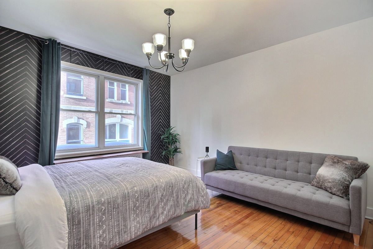 CITQ 297092 Superbe appartement de haut standing avec pierres aux murs, situé dans le quartier Montcalm, à proximité du Vieux-Québec. 1 lit double rétractable, 1 lit queen-size. Sèche-cheveux, set de repassage, air-conditionné et ventilateur sont aussi inclus. Les draps et serviettes seront fournis. A noter que le check-in se fait de manière autonome à partir de 15h et le check-out jusqu'à 11h le jour du départ. Pour plus d'information n'hésitez pas à lire la description détaillée ci-dessous. :)