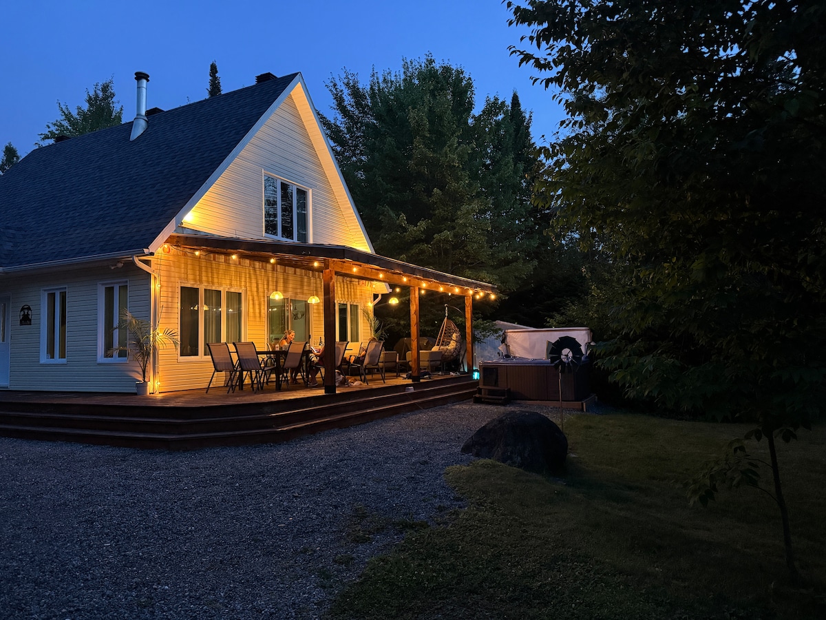 Situé au bord du lac Aylmer. Le MaverNess vous enchantera, avec le quai, le spa , la salle de jeux dans le garage incluant table de pool , table de baby-foot et les feux de camps sur le bord de l'eau . Chiens acceptés. Été: 7 nuits minimum. À votre disposition 1 kayak , 1 pédalo, 2 paddle bord. Vous pouvez amarrer votre bateau ou moto marine à notre quai. Sentier de VTT et motoneige tout près du chalet, Patinoire et piste de ski de fond au village à moins de 2 km. Mont adstock à 40 min.